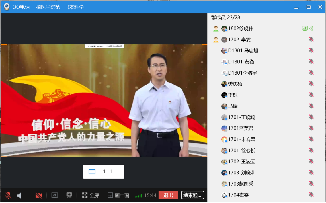自tyc7111cc太阳成集团第三(学生)党支部成立以来,始终坚持每双周开展集中政治学习,学习内容包括党的基本理论、党的最新政策、国家发展大事、学校发展大计等。寒假开始后,学生党员陆续返乡,支部将把政治学习的频率由两周一次改为一周一次,时间定为每周四的晚上19:30,全体党员同志齐聚“云端”,采取网络学习,视频会议等形式,共同学习研讨,交流提升,保证“三会一课”制度正常运行,确保党员意识记牢固,组织生活不中断,政治学习不放松,工作推进不停顿。