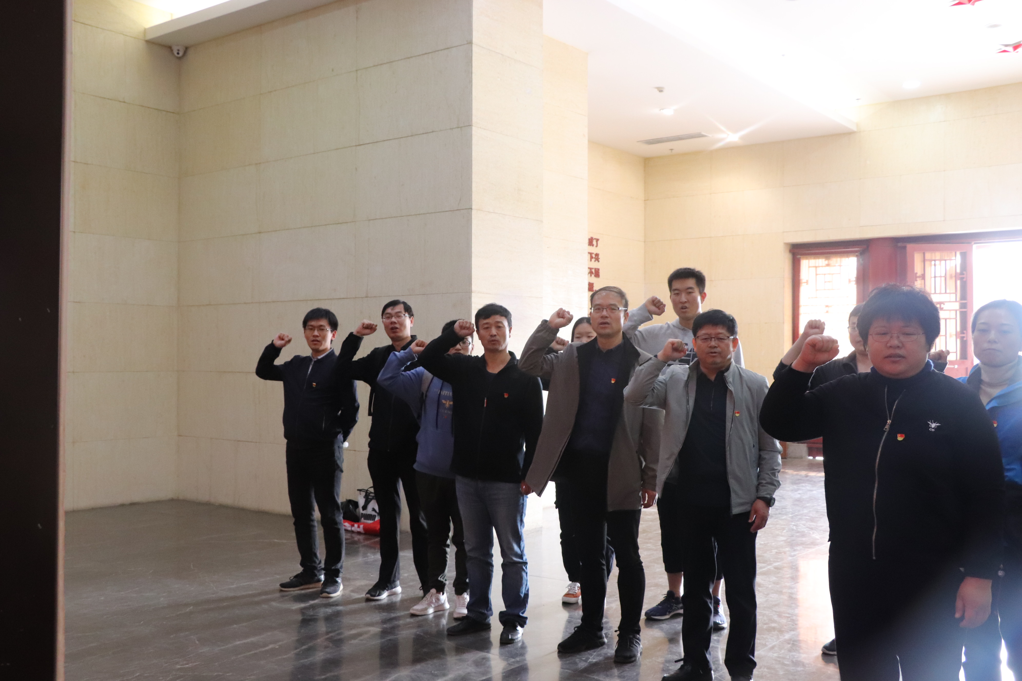 11月3日,学院党员赴莒南县大店镇庄氏庄园,来到了第一个中国共产党领导下的省级人民政府诞生地,全体党员同志参观了山东抗日根据地纪念馆,纪念馆内,在王进国书记的带领下,全体党员举起右手,面对党旗再次庄严宣誓,重温入党誓词。重温历史,观看实物,感受着革命先烈们的精神和力量,使全体党员对“不忘初心,牢记使命”有了更深刻的理解。通过参观,党员们重温了革命峥嵘岁月人民的伟大牺牲精神,真切感受到体现党的群众路线的“沂蒙精神”和革命先烈勇往直前、无私奉献的英雄精神。
