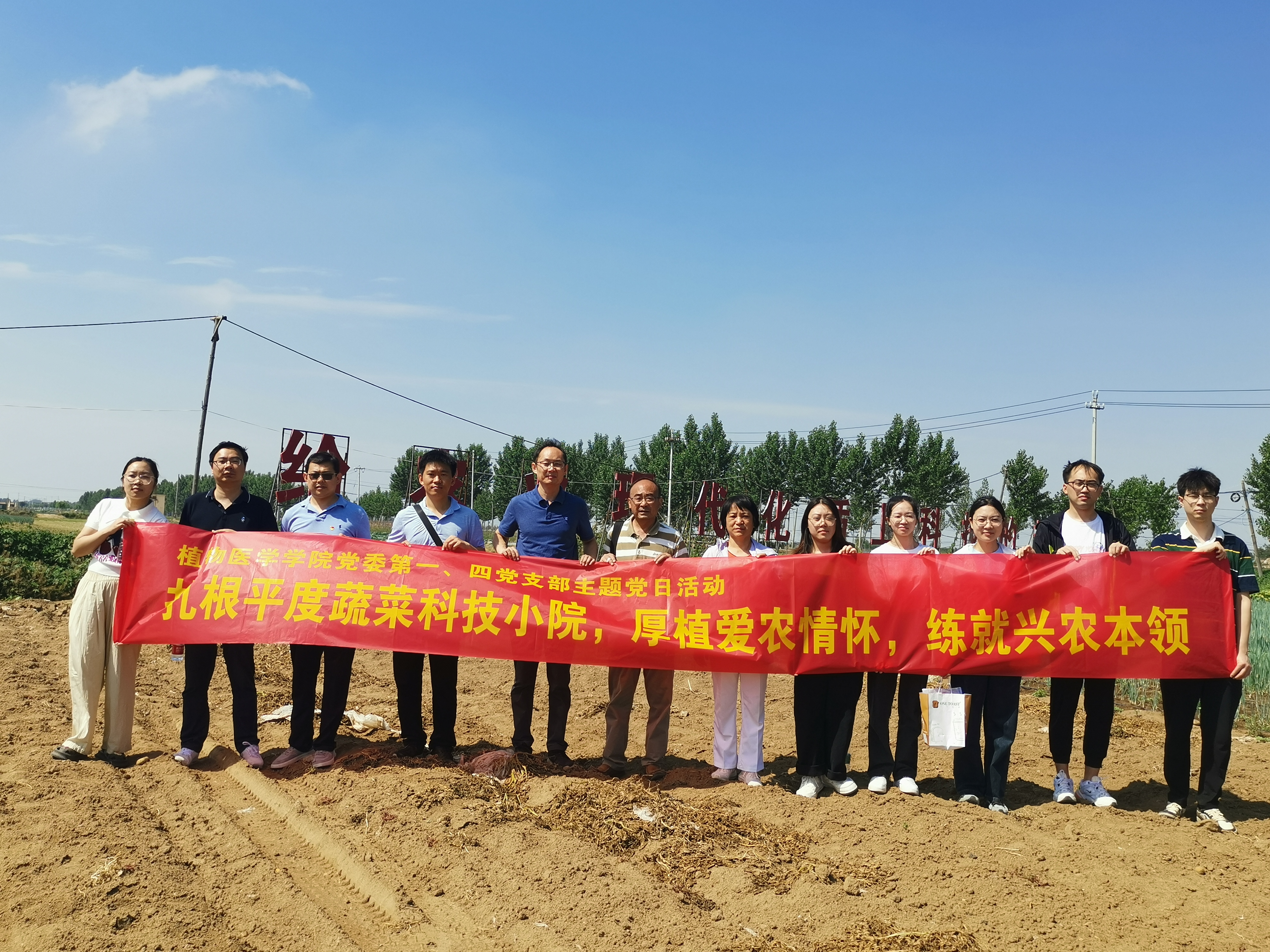 主题党日活动在平度蔬菜科技小院“田间课堂”举行。全体党员学习了习近平总书记给中国农业大学科技小院的学生回信精神,纷纷表示要牢记习近平总书记谆谆教诲,坚定理想信念,要“自找苦吃”,志存高远、脚踏实地,把课堂学习和乡村实践紧密结合起来,做到知行合一。