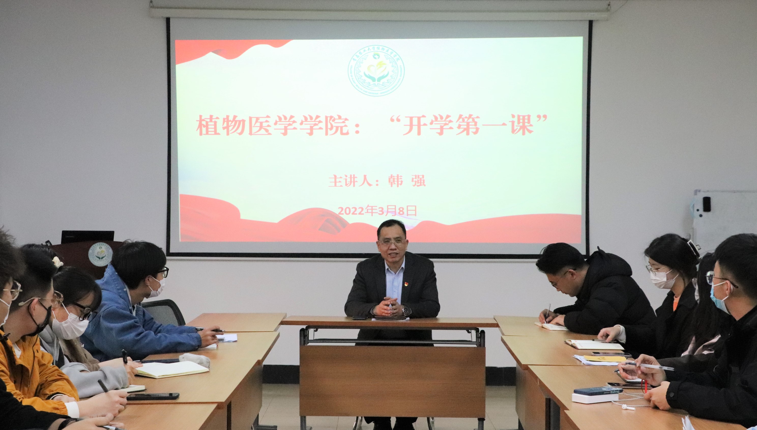 课上,韩强向同学们讲解了当前国内国际形势,讲到,当前国际形势不太平、不稳定,国家仍然处于新的战略机遇期。在《中共中央关于制定国民经济和社会发展第十四个五年规划和二〇三五年远景目标的建议》文件中提到当前我国的目标是贯彻新发展理念,立足新发展阶段,构建新发展格局,以国内大循环为主体,国内国际双循环相互促进。韩强指出,目前正值学院面临高质量发展的关键时期,需要全院师生共同努力提升教学质量、学科水平,实现学院高水平建设,申报上植物保护一级学科博士点。他对学生干部提出要求,要德智体美劳全面发展,充分锻炼自己,要有事业心、责任感、培养自身的奉献精神和大局意识。