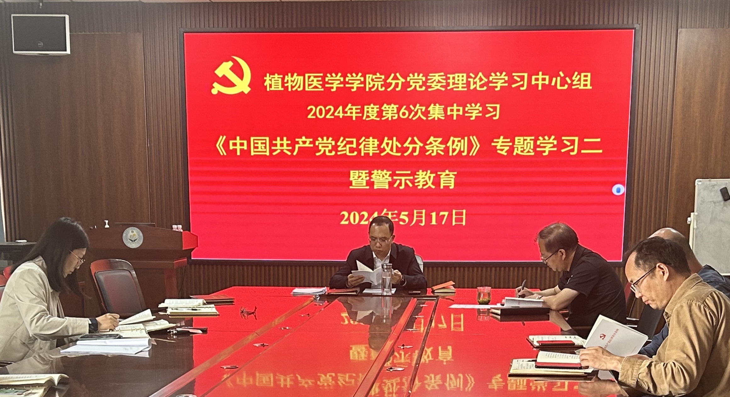 5月17日,tyc7111cc太阳成集团在学院会议室开展2024年度第6次党委理论学习中心组集中学习,深入学习《中国共产党纪律处分条例》,会议由学院党委书记韩强主持,党委理论中心组全体成员参加。