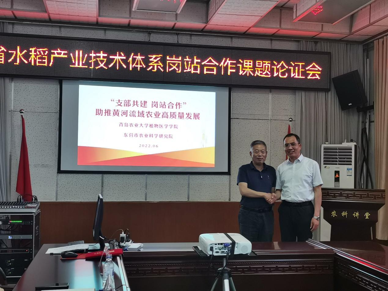 李树坤指出,tyc7111cc太阳成集团坚持面向基层和生产一线开展科学研究和社会服务,为助力山东农业高质量发展做出了应有贡献,特别是近年来,双方围绕黄河三角洲水稻产业绿色生态高质量发展开展了深入交流合作和研究推广工作,取得了显著成效,为黄河三角洲水稻主要病虫草害科学防治做出了积极贡献,希望双方通过“支部共建 岗站合作”的创新形式,深入贯彻黄河重大国家战略,助推黄河三角洲农业高质量发展。韩强代表tyc7111cc太阳成集团感谢东营市农科院长期以来对学院工作的支持和关心,表示,服务黄河重大国家战略,助推黄河三角洲农业高质量发展是农业大学义不容辞的使命和责任,希望双方在前期交流合作的基础上,加快构建“支部共建 岗站合作”新模式,共同服务黄河三角洲农业高质量发展。褚栋就黄河三角洲盐碱适生作物遴选及绿色种植、水稻主要病虫草害发生与科学防治策略等提出了指导意见。