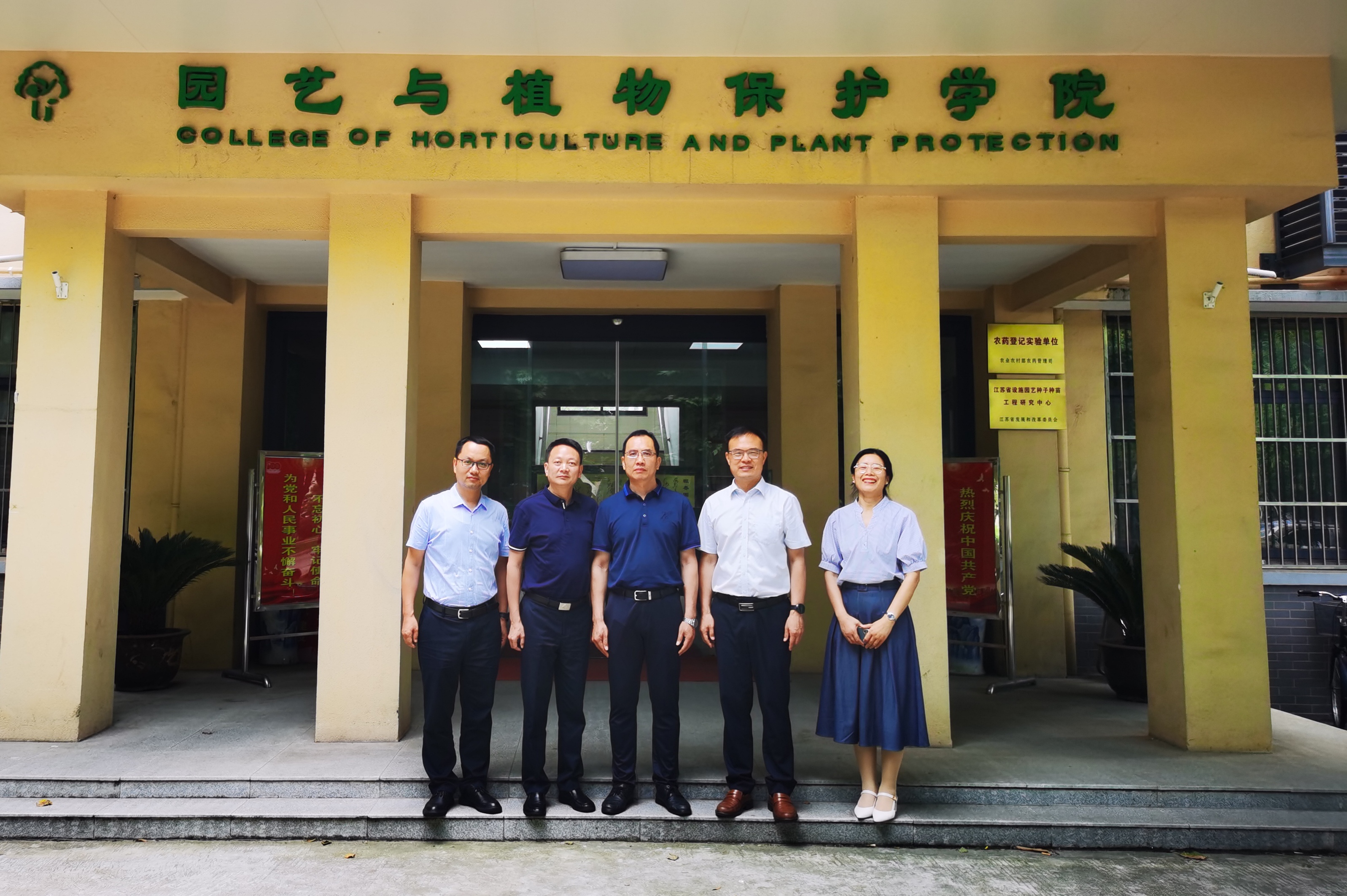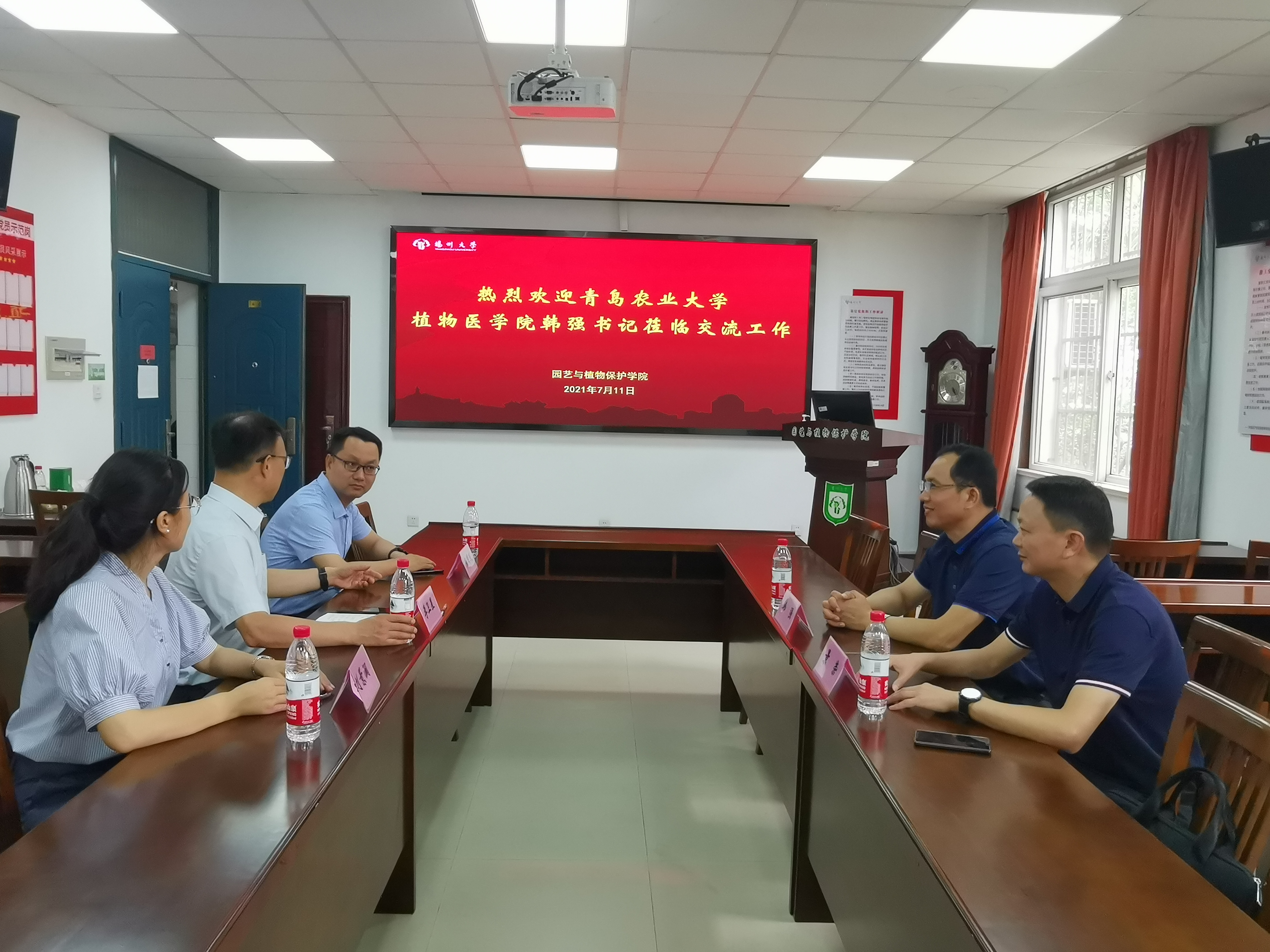7月11日,tyc7111cc太阳成集团党总支书记韩强赴扬州大学园艺与植物保护学院交流学习,扬州大学园艺与植物保护学院党委书记李卫星、扬州大学校长办公室副主任景荣、扬州大学教务处副处长杨国庆、扬州大学园艺与植物保护学院副院长刘景澜参加座谈交流。