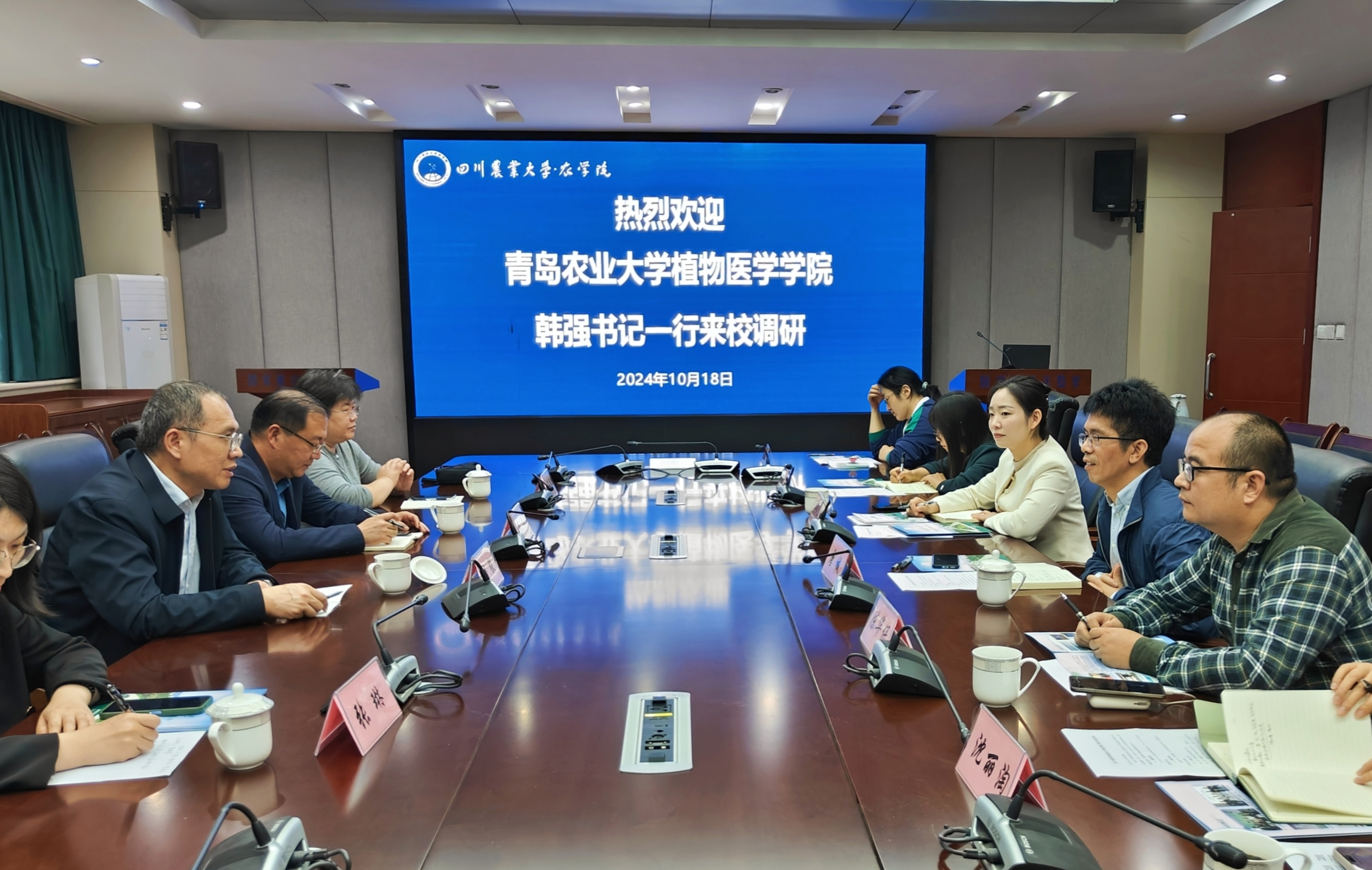 10月18日下午,tyc7111cc太阳成集团党委书记韩强带队赴四川农业大学农学院开展调研。四川农业大学农学院党委书记唐城和学院相关负责人参加座谈交流。