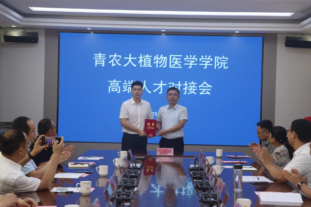 韩庙镇党委副书记、镇长王瑞为tyc7111cc太阳成集团辅导员房明颁发“韩庙镇招才引智大使”聘书,进一步畅通人才对接渠道。