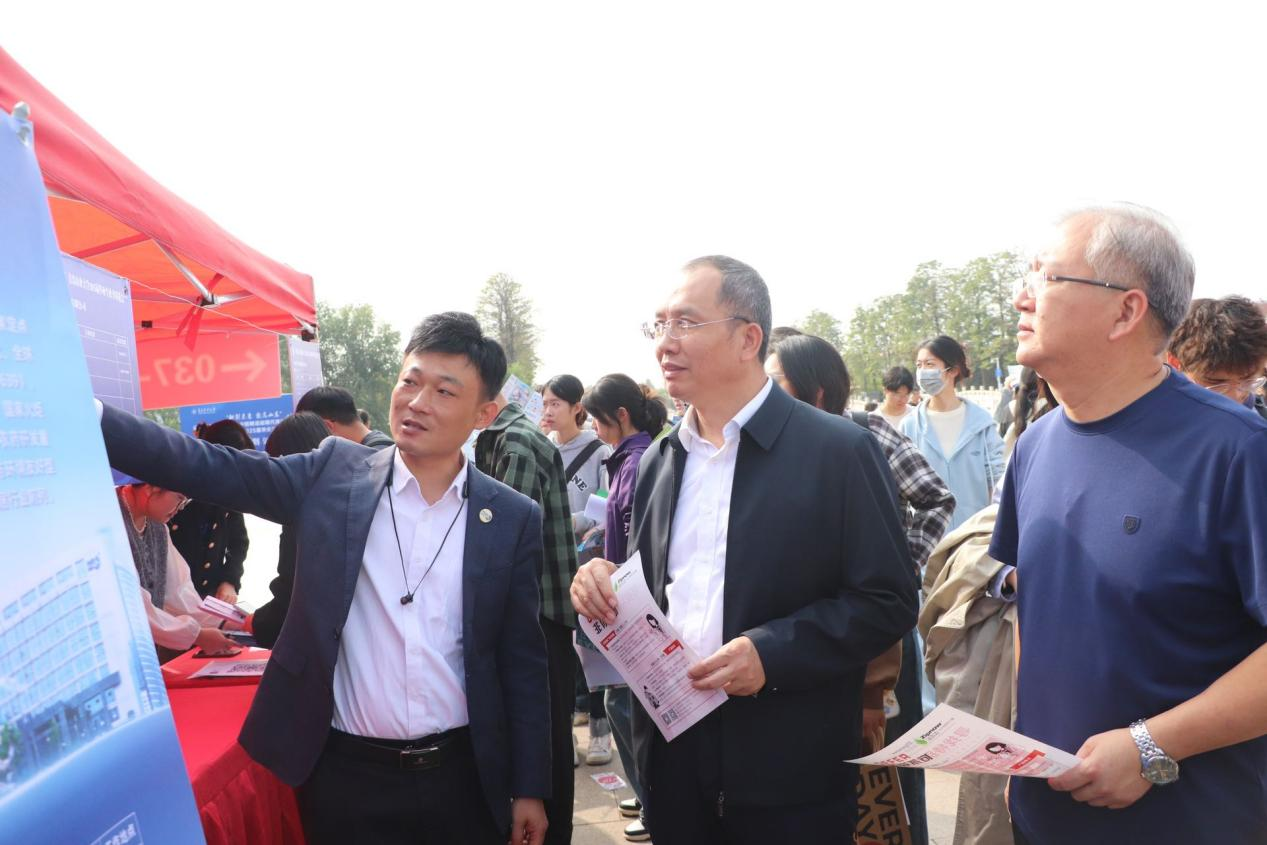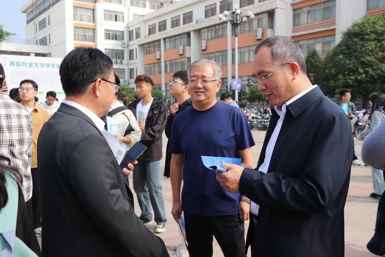 10月11日,太阳成tyc7111cc在虹子广场举办山东省高校毕业生集中招聘活动现代高效农业产业专场暨太阳成tyc7111cc2025届毕业生秋季双选会。学院党委书记韩强,党委副书记、副院长李军来到招聘会现场与用人单位和毕业生亲切交流,学院辅导员、班主任来到招聘会开展访企拓岗,加强校企联系对接。