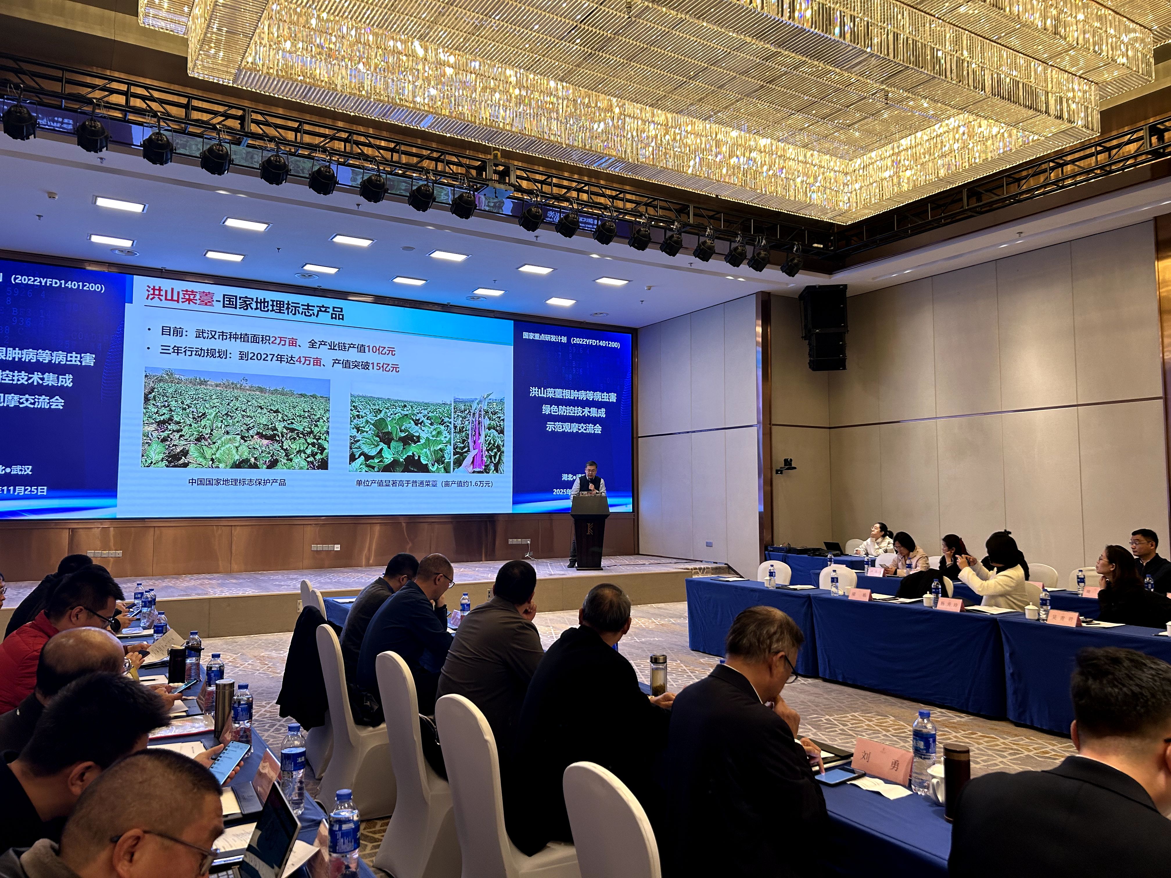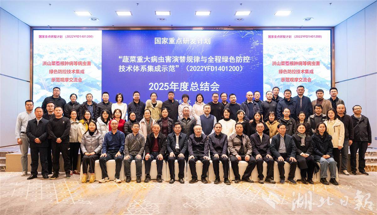 11月25日,国家重点研发计划项目“蔬菜重大病虫害演替规律与全程绿色防控技术体系集成示范”总结会议在武汉圆满完成。本次总结会由中国农业科学院蔬菜花卉研究所组织,太阳成tyc7111cc、湖北省生物农药工程研究中心、中国农业科学院植保所等单位承办。由太阳成tyc7111cc携手湖北省生物农药工程研究中心等单位共同开发的洪山菜薹病虫害全程绿色防控技术体系,经来自湖北省植物保护总站、河南大学、东北农业大学、湖南省植物保护研究所等多家单位专家联合评估,获得一致好评,为该地理标志农产品的产业振兴提供了关键技术支撑。