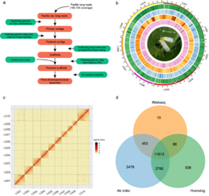 图1. 烟粉虱MED基因组的测序流程、组装与注释