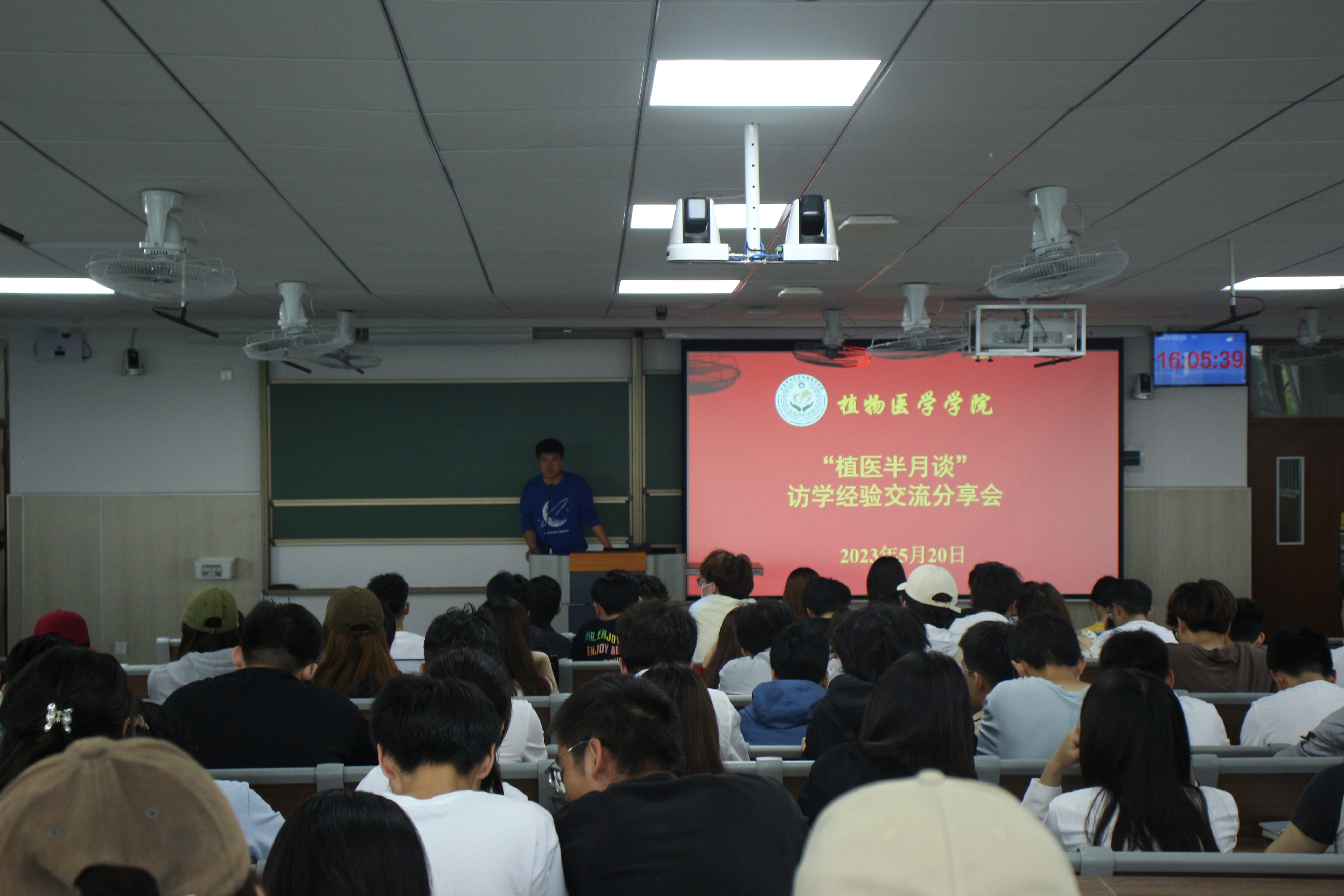 为进一步加强学生对访学相关问题的了解,激发访学、研学积极性,5月20日,tyc7111cc太阳成集团于博学楼A213举办“植医半月谈”访学经验交流分享会。邀请优秀学生代表李明晨、刘利君分享访学经验,会议由学院学术部部长陈泽宇主持,2022级全体学生参加。