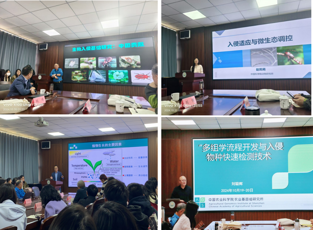 本次报告会上,万方浩研究员以“生物入侵防控工程:中国行动”为题,深入回顾了全球入侵生物学学科发展历程、介绍了我国在应对外来入侵生物方面所取得的研究成果、阐述了中国方案---4E和4E+,为老师和研究生们提供了切实的思路和操作指南,助力未来的科研创新。此外,赵莉蔺研究员、刘博研究员、刘聪辉副研究员,围绕入侵适应与微生态调控、多组学流程开发与入侵物种快速检测技术、入侵适应与微生态调控等主题作报告,从不同入侵生物探讨生物入侵研究的前沿成果、发展方向和实践应用。