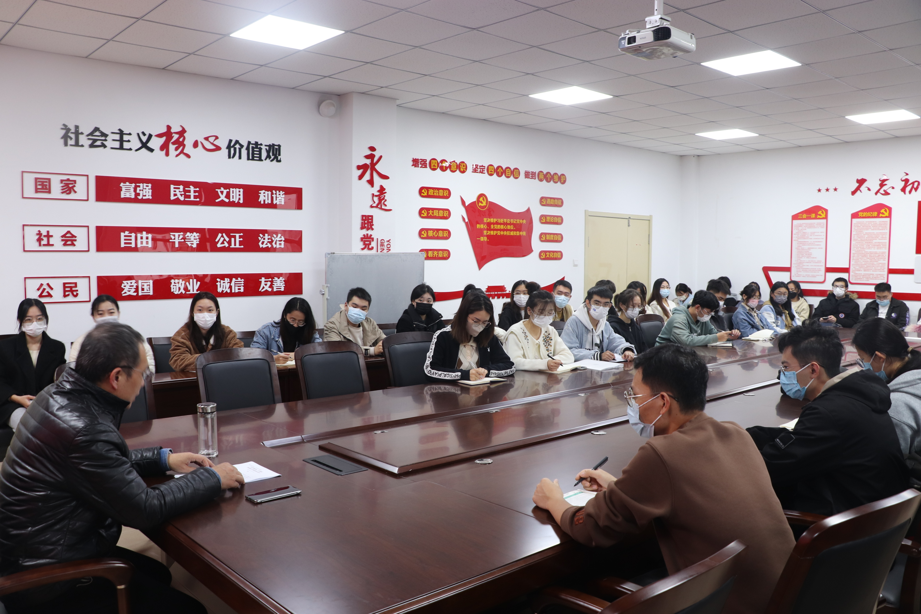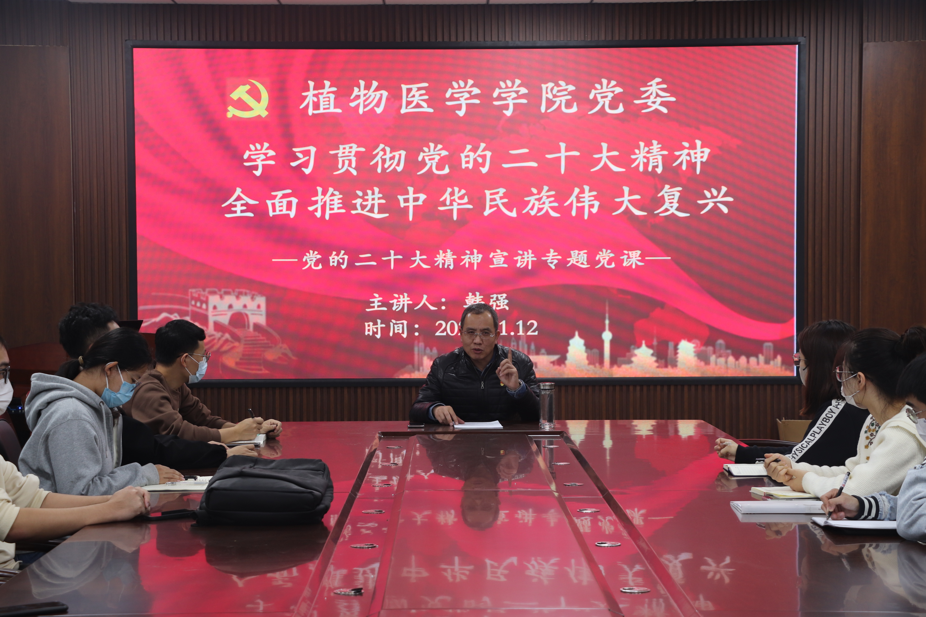 会上,韩强带领全体同学回顾了中国共产党发展的光辉历史和所取得的辉煌成就,并深入学习党的二十大报告。韩强围绕“十个深刻理解”全面深入阐释了党的二十大报告的深刻内涵,指出党的二十大在政治上、理论上、实践上取得了一系列重大成果,就新时代新征程党和国家事业发展制定了大政方针和战略部署,是我们党团结带领人民全面建设社会主义现代化国家、全面推进中华民族伟大复兴的政治宣言和行动纲领。