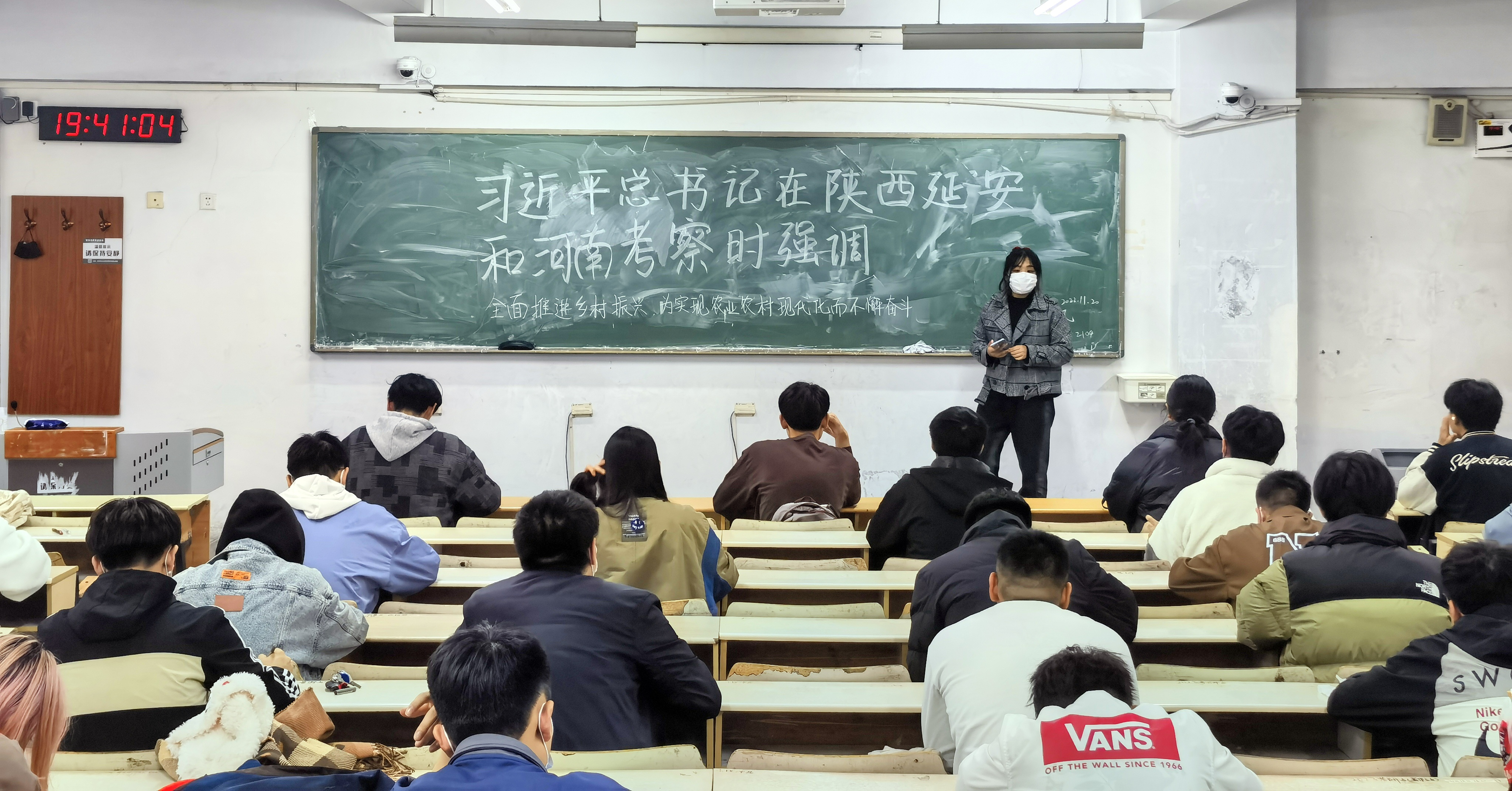 11月20日,tyc7111cc太阳成集团在教学楼C区开展主题政治学习,集体学习《习近平在陕西延安和河南安阳考察时强调 全面推进乡村振兴 为实现农业农村现代化而不懈奋斗》,tyc7111cc太阳成集团全体学生参加。