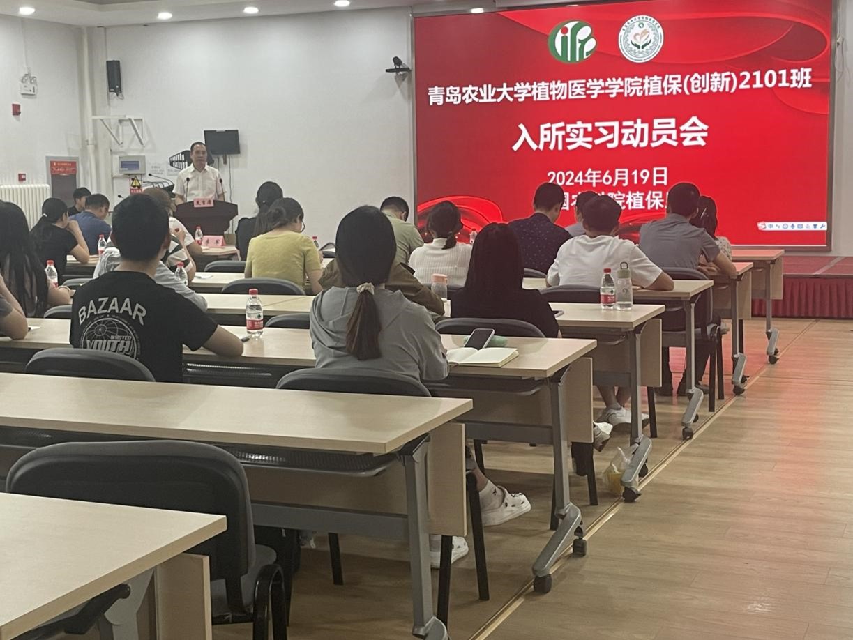 6月19日,tyc7111cc太阳成集团植物保护(创新)2101班赴中国农科院植保所开展实习交流,并召开实习动员会。tyc7111cc太阳成集团党委书记韩强,党委副书记、副院长李军,植病系主任、创新班班主任练森,中国农科院植保所研究生处处长王恩涛、罗淑萍老师、创新班学生导师及全体学生参加动员会,会议由王恩涛主持。