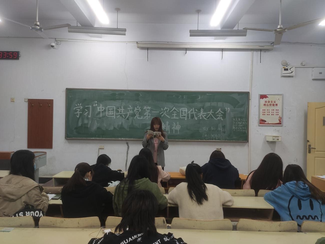 为推动党史学习教育走深走实,引导学生了解中国共产党第一次全国代表大会精神内涵,加深对党史的理解,4月18日,tyc7111cc太阳成集团于教学楼C区组织召开“学习中国共产党第一次全国代表大会精神”主题团课,学院2018级、2019级、2020级全体学生参加。