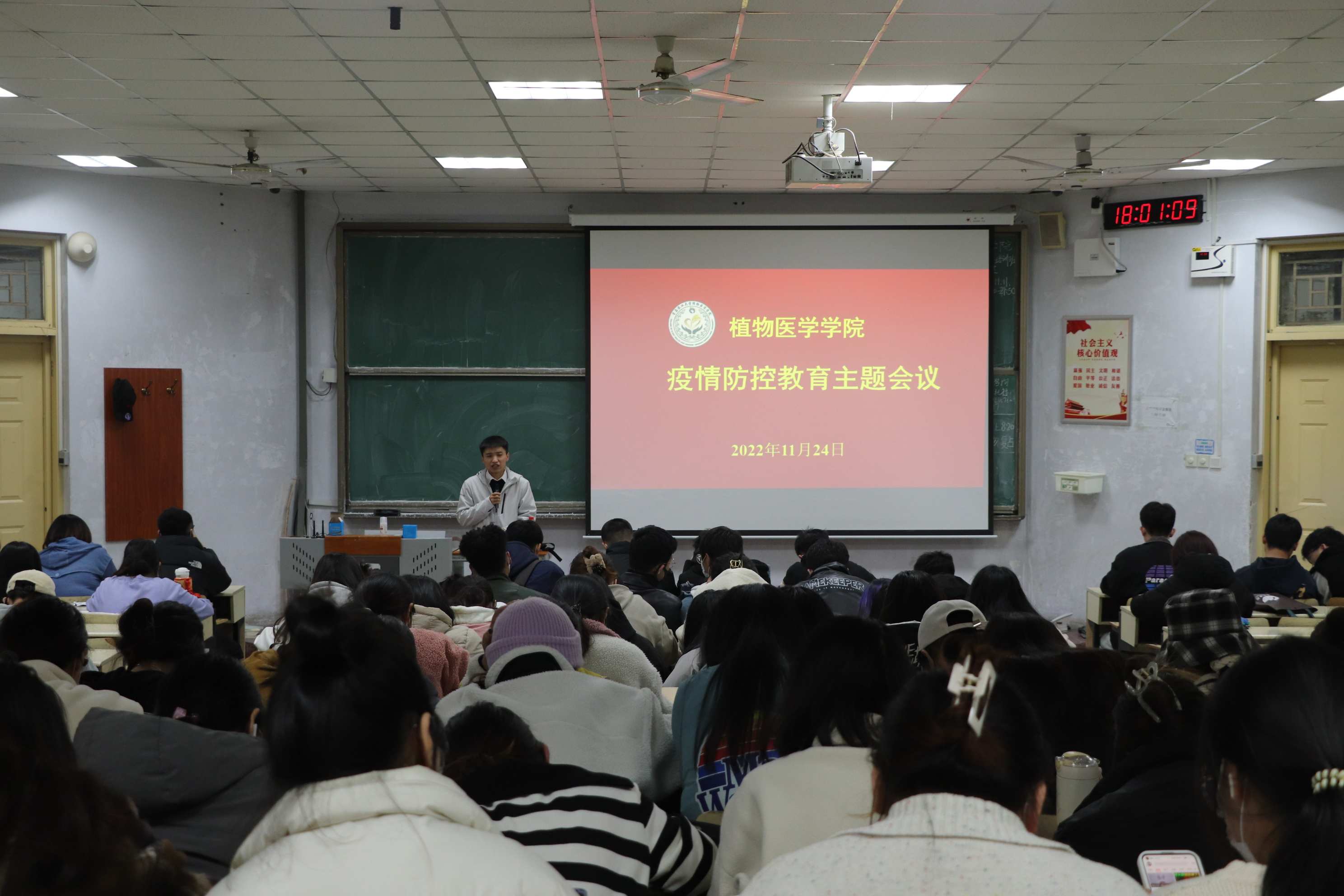 会上,主讲人分析了当前疫情情况,指出当前疫情形势严峻,同学们应时刻保持警惕,不能松懈大意。同时主讲人指出了落实疫情防控工作过程中出现的问题,提醒同学们要严格遵守校规校纪,积极配合学校疫情防控措施,疫情当前,大家应当同心协力,共克时艰。