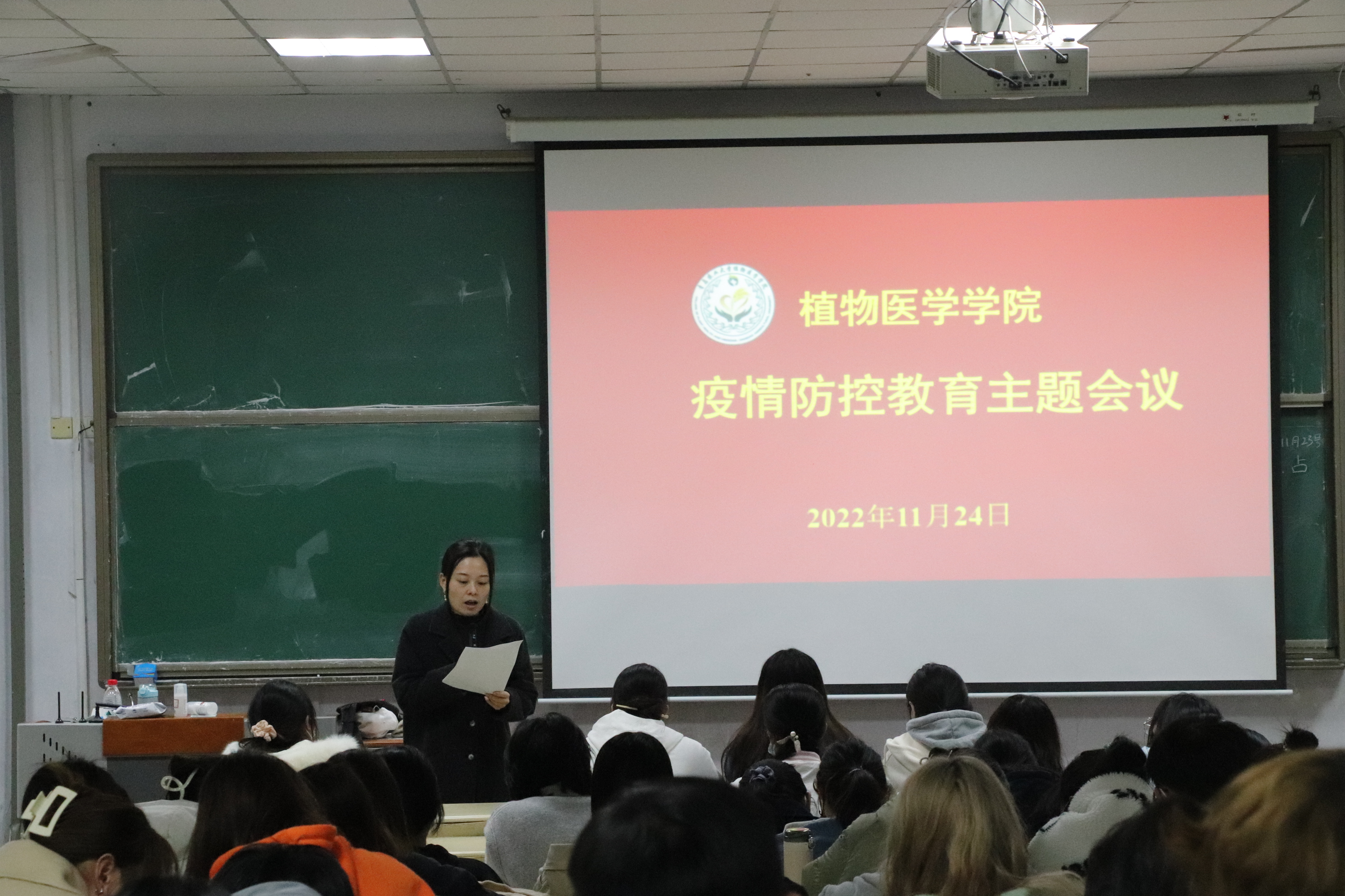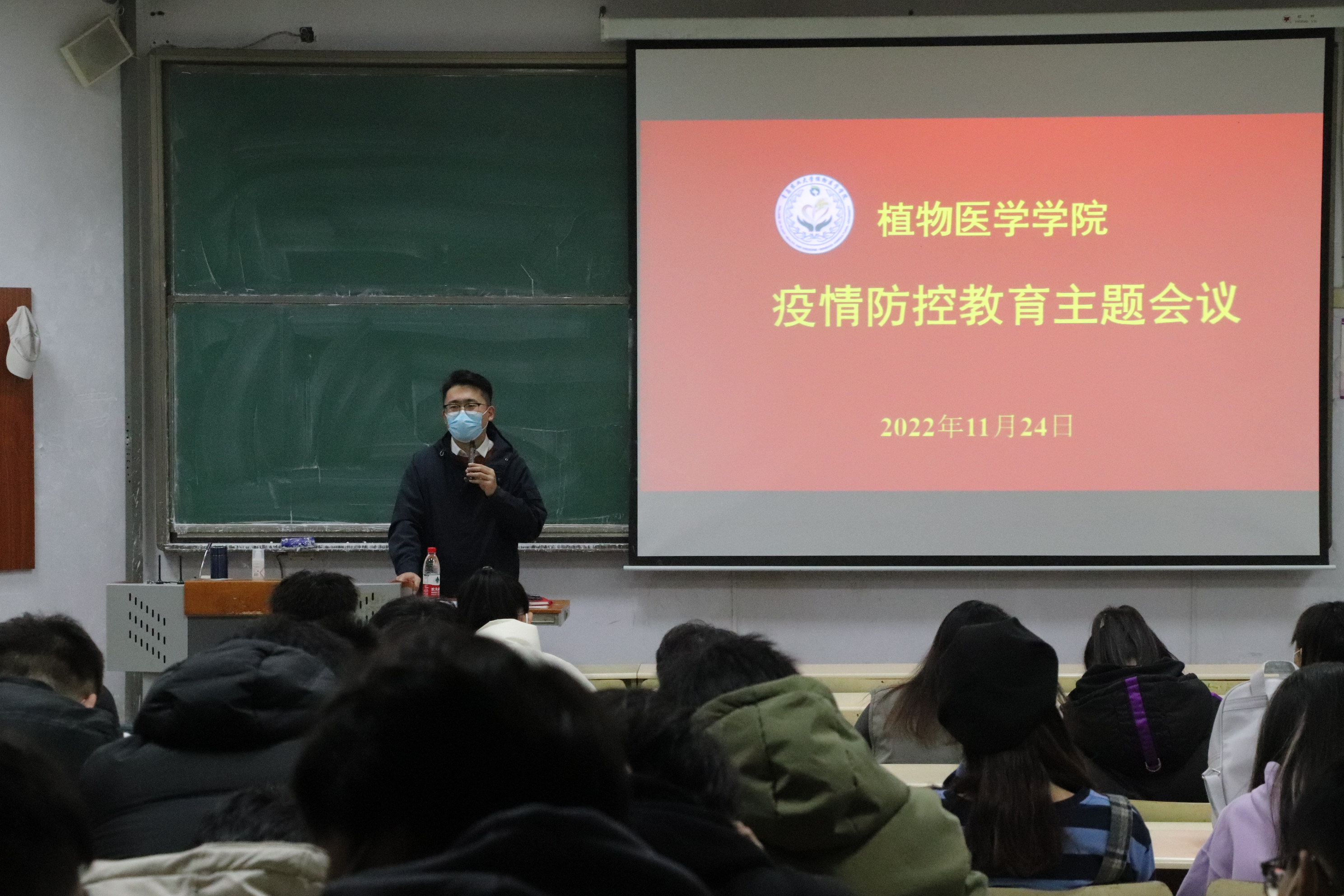 11月24日,tyc7111cc太阳成集团在教学区召开疫情防控教育主题会议,团委书记张琳、辅导员丁晨、石岩、曹欣然主讲,学院2019级、2020级、2021级本科生以及全体研究生参加。