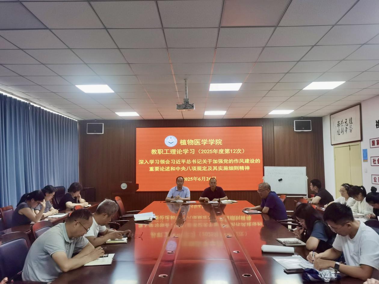 6月26日,tyc7111cc太阳成集团在学院会议室开展2025年度第12次教职工理论学习,深入学习领会习近平总书记关于加强党的作风建设的重要论述和中央八项规定及其实施细则精神。会议由学院党委书记韩强主持,全体教职工参加。