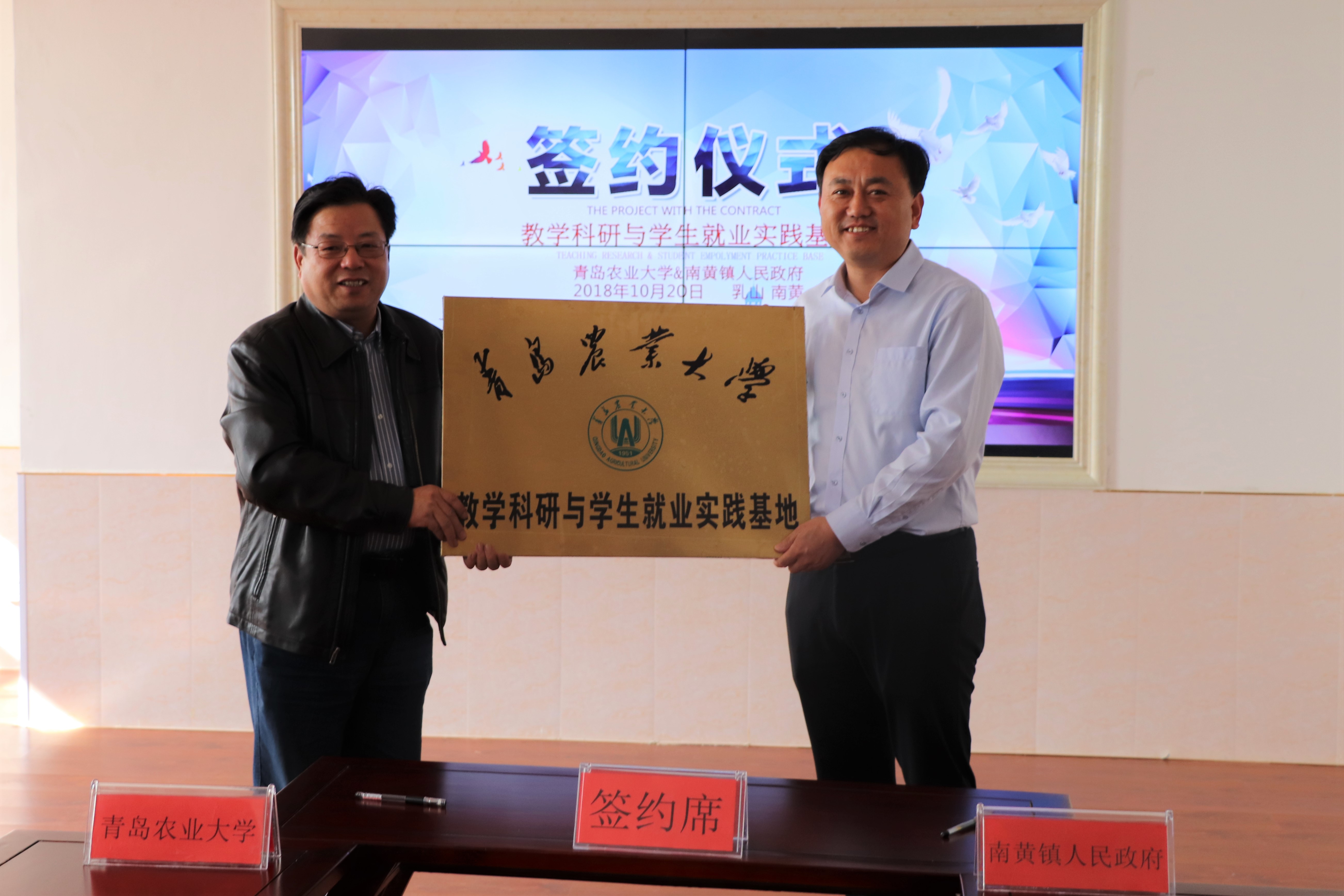 10月20日上午,tyc7111cc太阳成集团一行人员来到赴乳山市南黄镇,与南黄镇人民政府、俩大学生枣园举行教学科研与学生就业实践基地签约揭牌仪式,签署合作协议,并与基地技术人员就植物病虫害防治、绿色农业等相关问题进行了座谈交流。