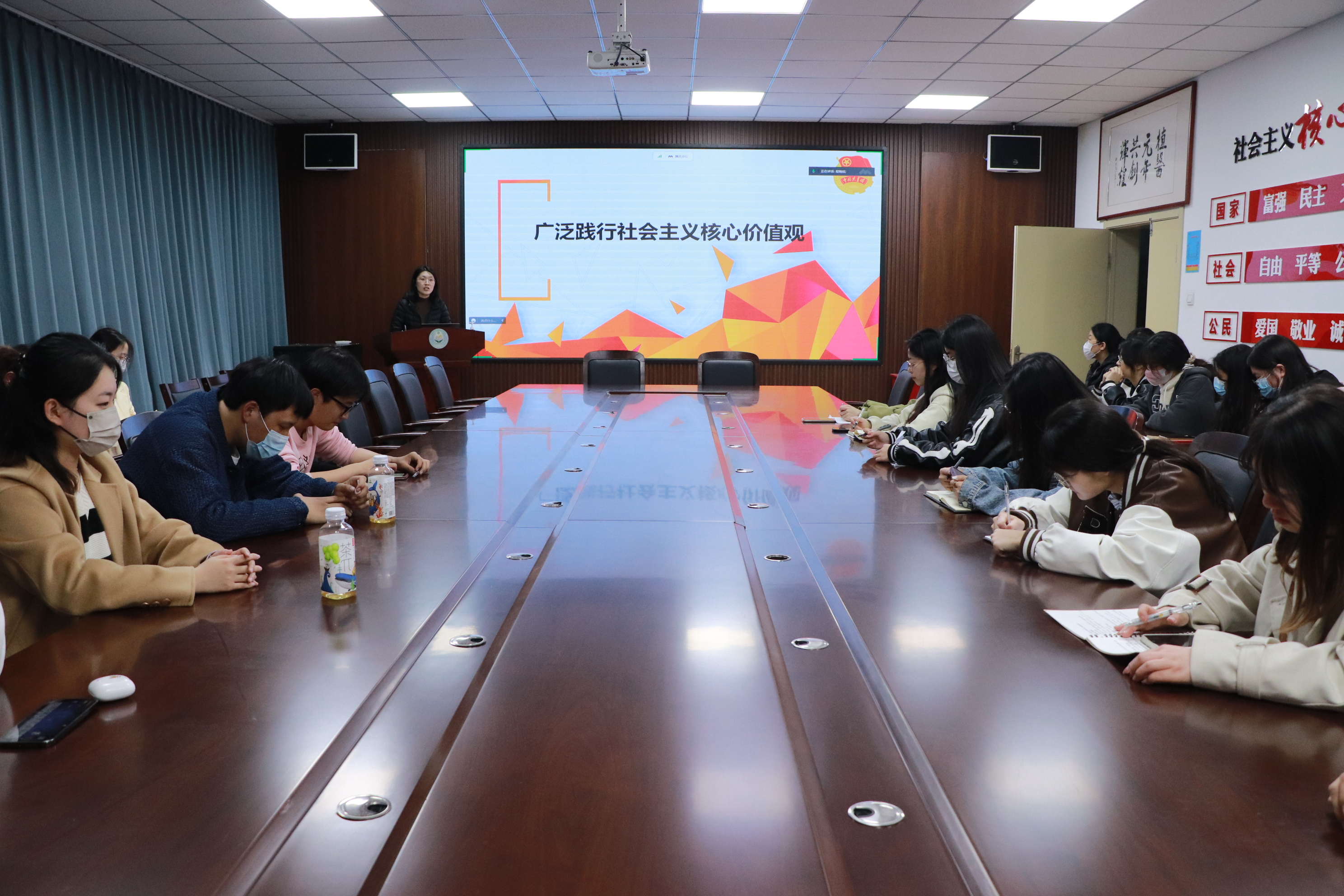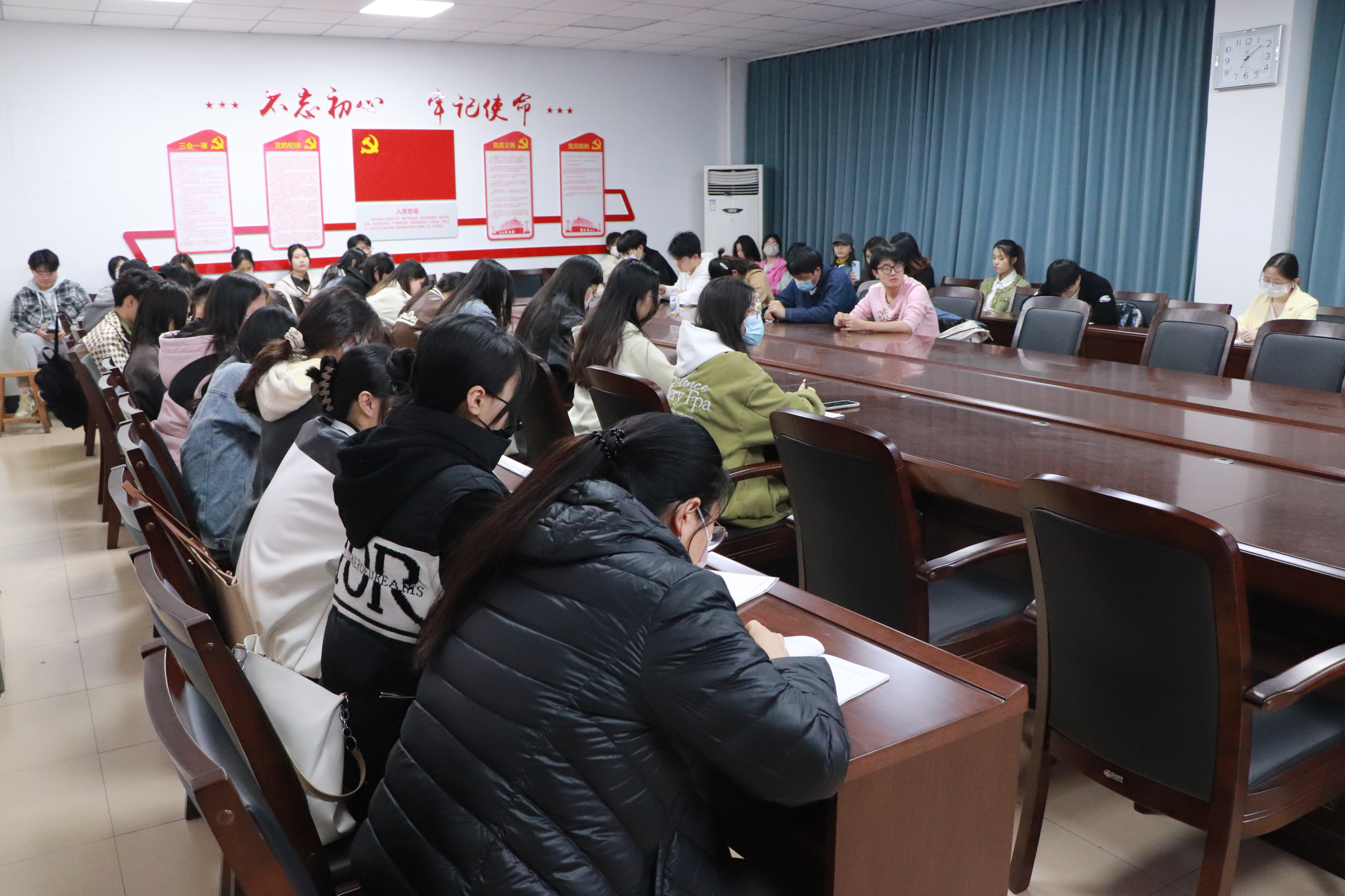 4月9日,tyc7111cc太阳成集团在会议室开展“学习二十大 永远跟党走 奋进新征程”主题团课,学院2020级、2021级、2022级各班团支部委员会成员参加,党委宣传委员、团委书记张琳主讲。
