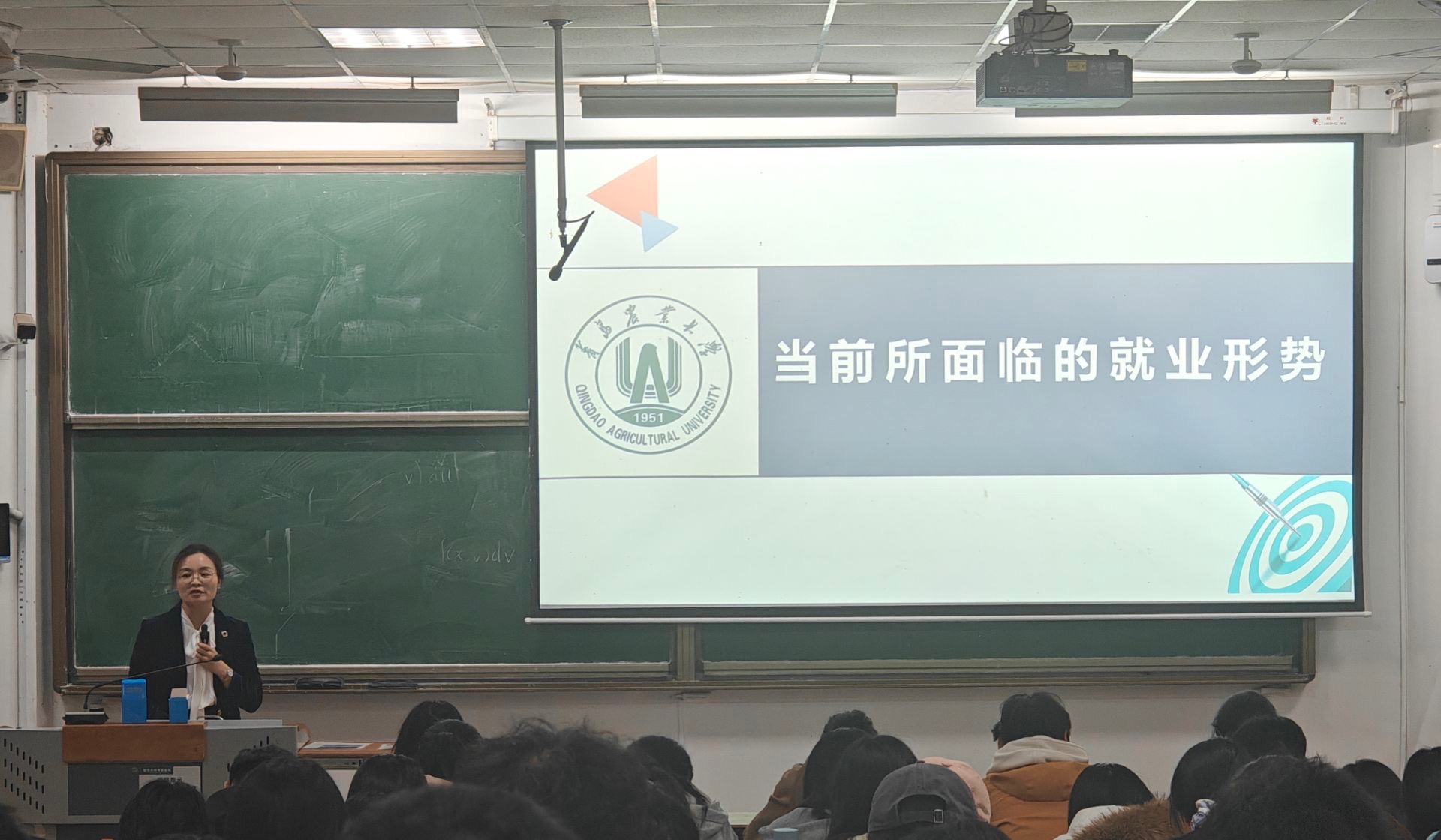 10月17日,tyc7111cc太阳成集团在教学楼B101举办毕业生就业工作动员暨求职指导培训会。太阳成tyc7111cc学生工作处副处长吕国莹、tyc7111cc太阳成集团党委副书记、副院长李军、青岛苏贝尔公司人力资源部经理杨晓婷及全体2026届毕业生参会,会议由辅导员房明主持。