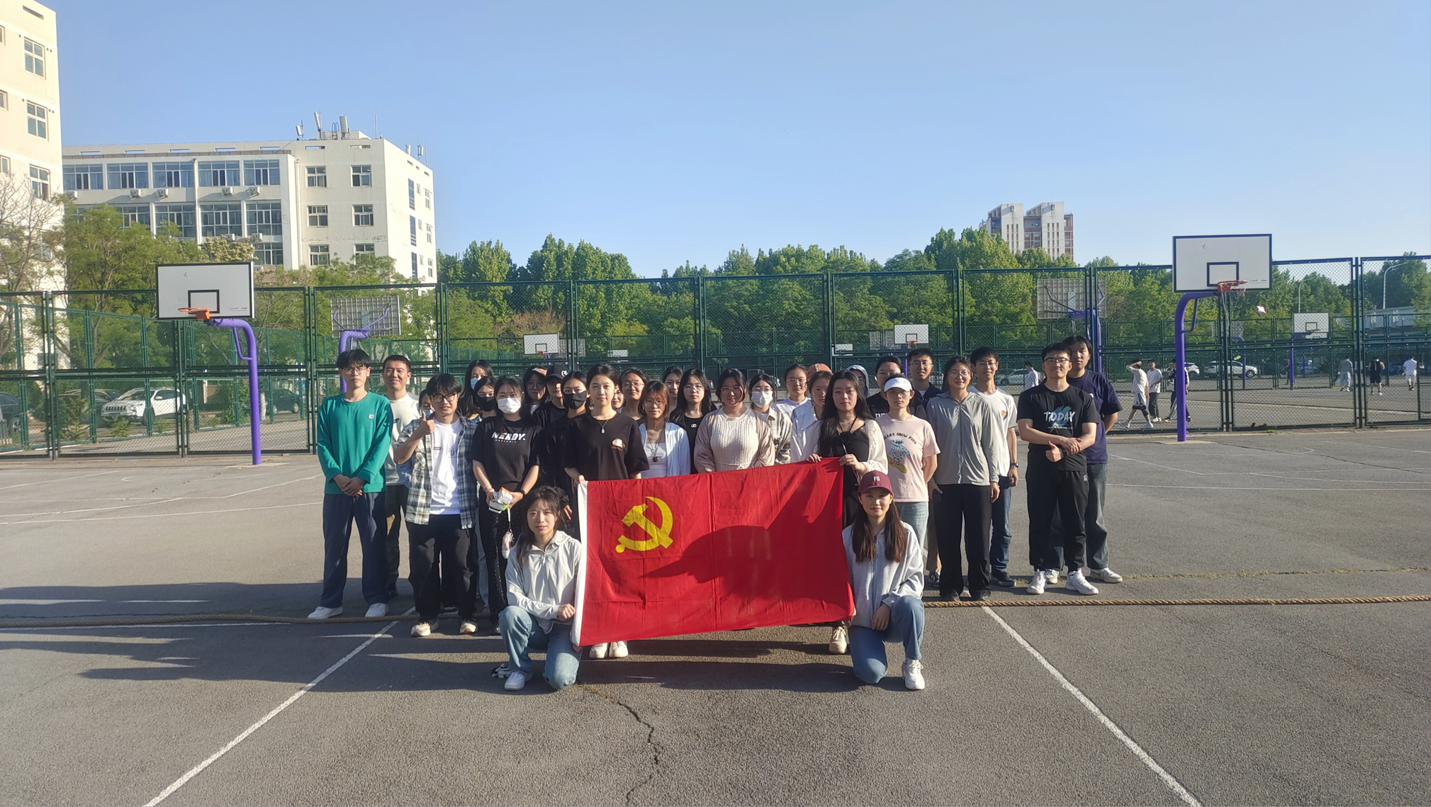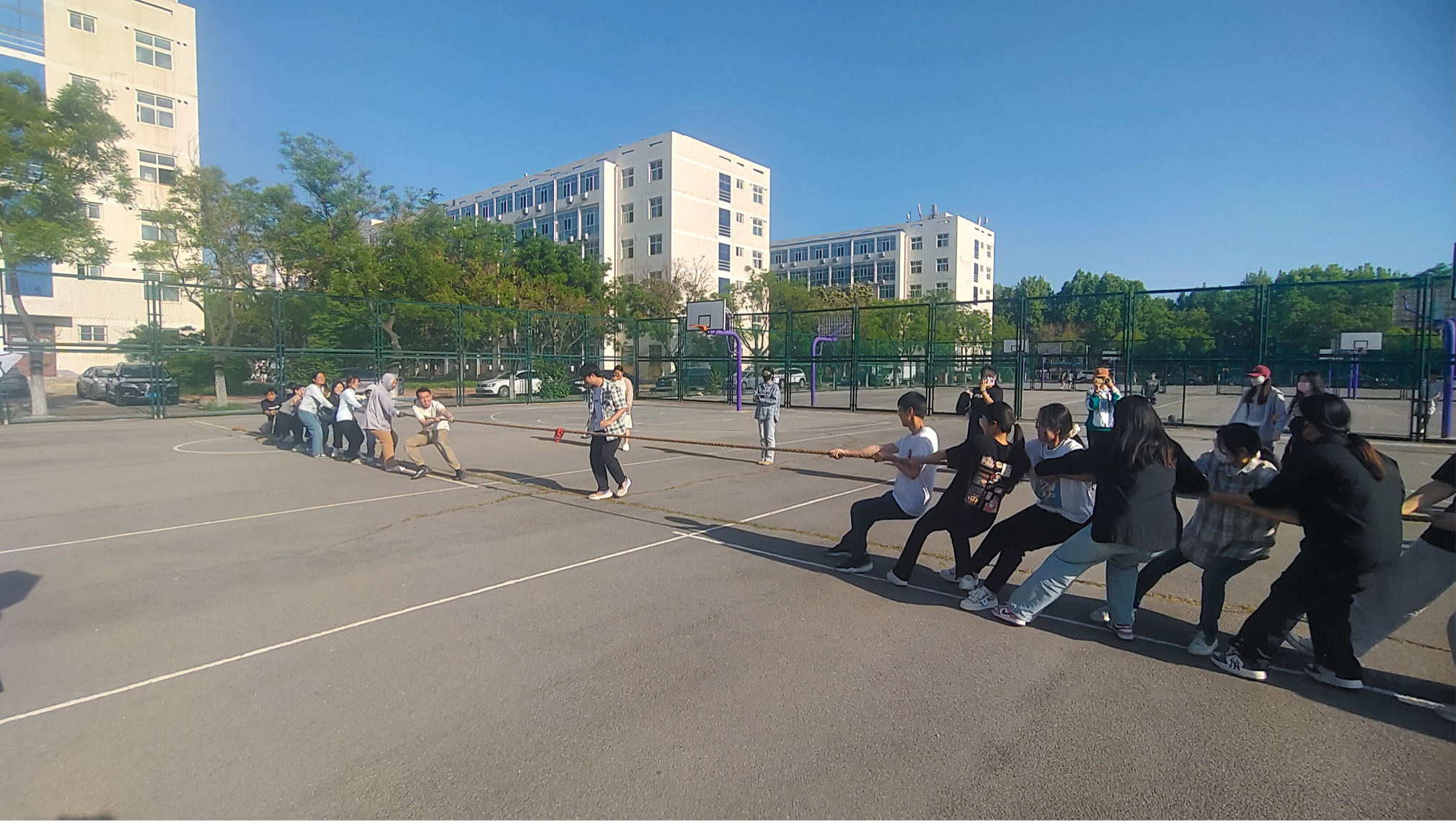 5月13日,tyc7111cc太阳成集团第三(学生)党支部在校东篮球场开展了主题为“党建引领,凝心聚力”的拔河比赛。