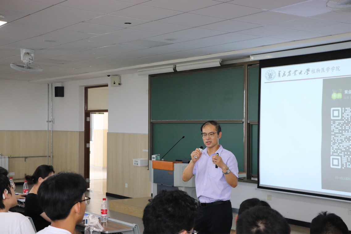 黄金光从太阳概况、学院历史、学科情况、导师团队、科研平台和人才培养等方面对学院进行了介绍,重点解读了植物保护专业特色、人才培养成效、就业发展情况。他指出,大学是人生路上一个重要的新起点,同学们务必要加强自主学习,明确奋斗方向,不断完善自身各项技能,为日后的进一步深造打下坚实基础。