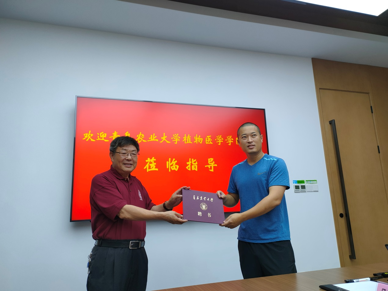 连磊对刘同先、韩强一行的到来表示热烈欢迎,介绍了清原农冠公司的发展理念、集团架构、企业文化和经营状况,以及近年来在服务国家重大战略和农业科技创新等方面取得的成绩,表达了与tyc7111cc太阳成集团开展多领域、深层次合作的愿望。刘同先介绍了tyc7111cc太阳成集团的基本情况以及在人才培养、科技创新、社会服务等方面的主要做法和发展思路。刘同先指出,清原农冠公司与tyc7111cc太阳成集团有着共同的信念和广阔的合作空间,希望双方在人才培养、科学研究、社会服务等方面开展深入合作,共同为我国植保事业培养更多优秀人才。双方就人才培养、科研合作、仪器共享、学生就业等方面进行了深入交流,并对在清原农冠公司建设教学科研实践基地达成了共识。刘同先为连磊颁发了太阳成tyc7111cc客座教授聘书并表示祝贺。交流会后,连磊带领刘同先、韩强一行参观了清原农冠作物科学有限公司。