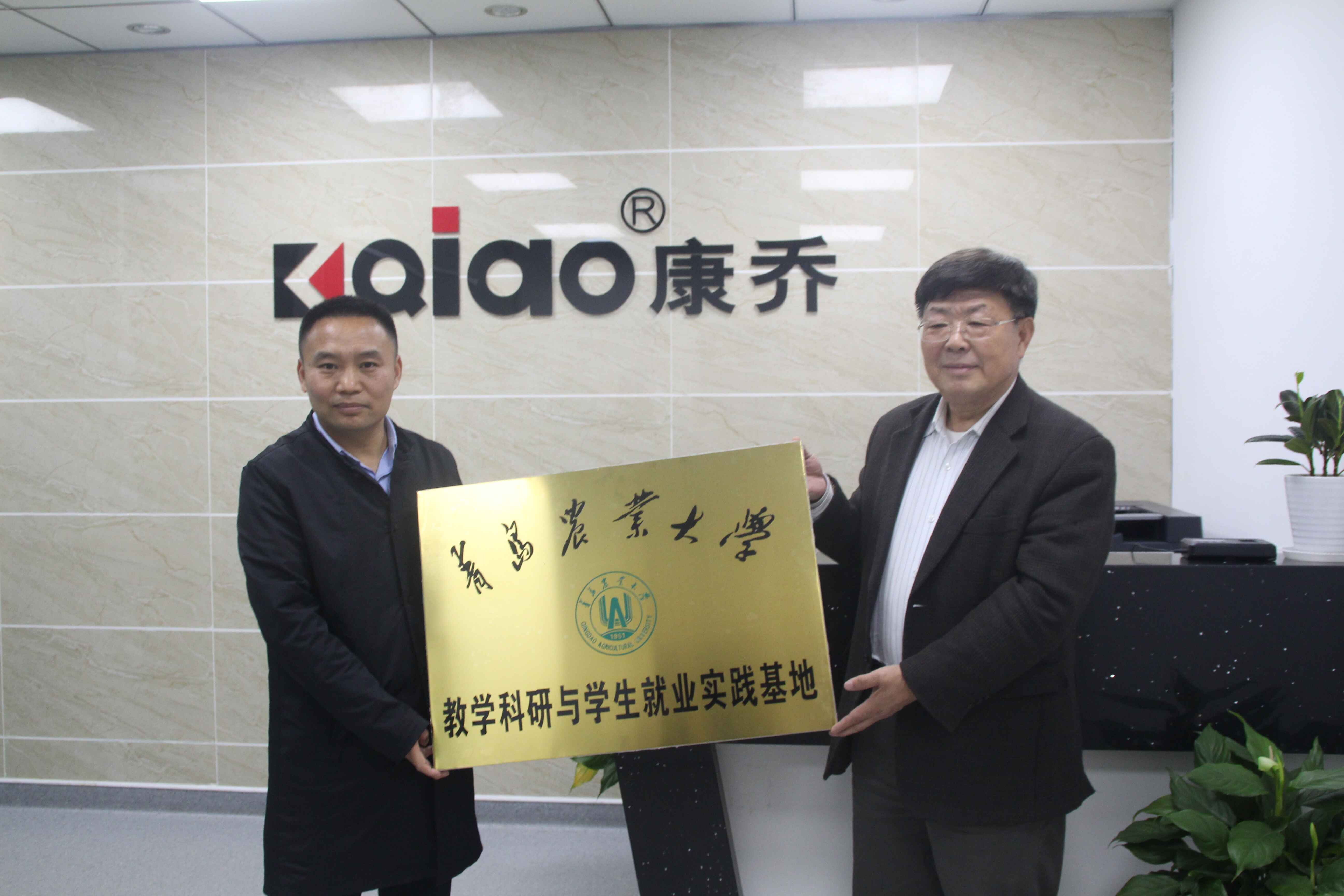4月23日,tyc7111cc太阳成集团在山东康乔生物科技有限公司设立教学科研与学生就业实践基地,tyc7111cc太阳成集团院长刘同先教授向山东康乔公司董事长李宁先生授牌。双方还就进一步合作进行了磋商,会后刘同先院长看望了在康乔公司实习的我院学生。tyc7111cc太阳成集团副院长黄金光教授、农药学教研室主任李凌绪博士等参加了授牌仪式。