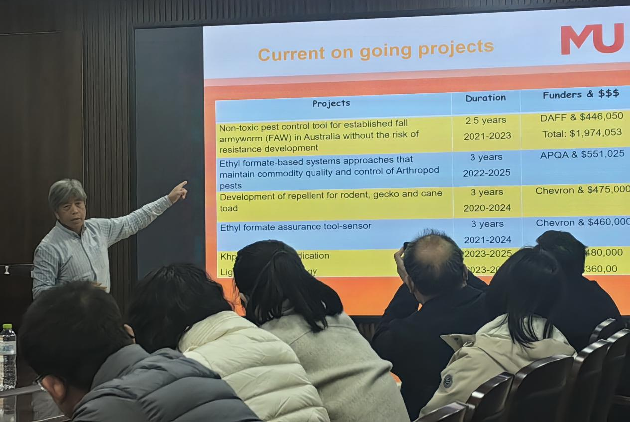 Ren教授结合自身关注领域和研究内容进行了细致讲解,通过可见光近红外高光谱成像技术结合机器深度学习在生物安全风险识别与诊断新应用的案例,深度剖析了新技术、新设备在现代生物安全检测、监测和防控中发挥的重要作用,提出了通过采集高光谱图像结合大数据分析能更加有效进行病原的分类鉴定和早期精准诊断等观点。此外,Ren教授阐述了澳大利亚生物安全的研究现状、检验检疫等相关内容,并与学院师生就目前生物安全领域的研究热点和难点展开深入探讨和广泛交流。
