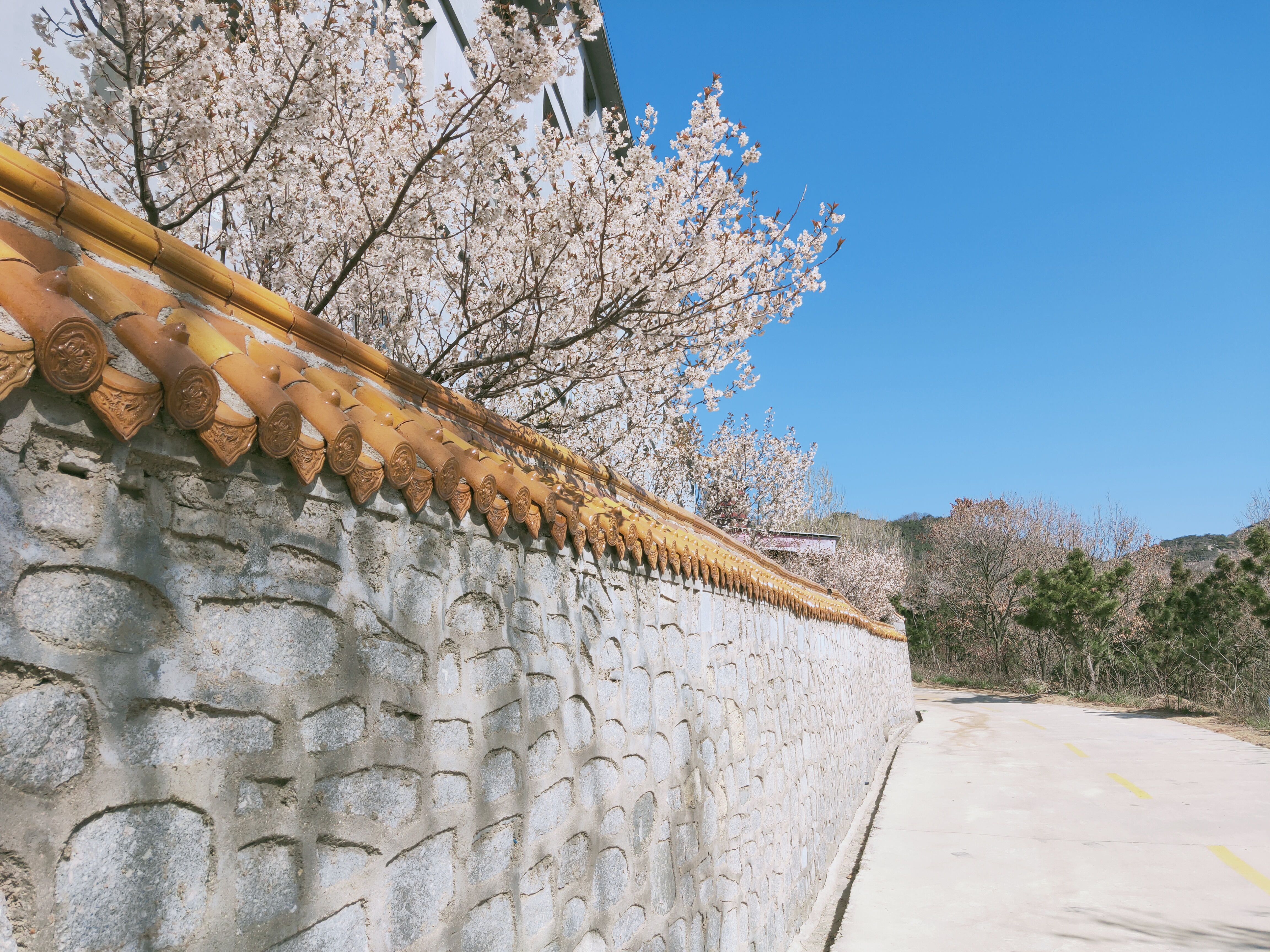 寺庙外出墙的樱花,是对春天的迎接,寺庙内静悄悄的,格外让人宁静