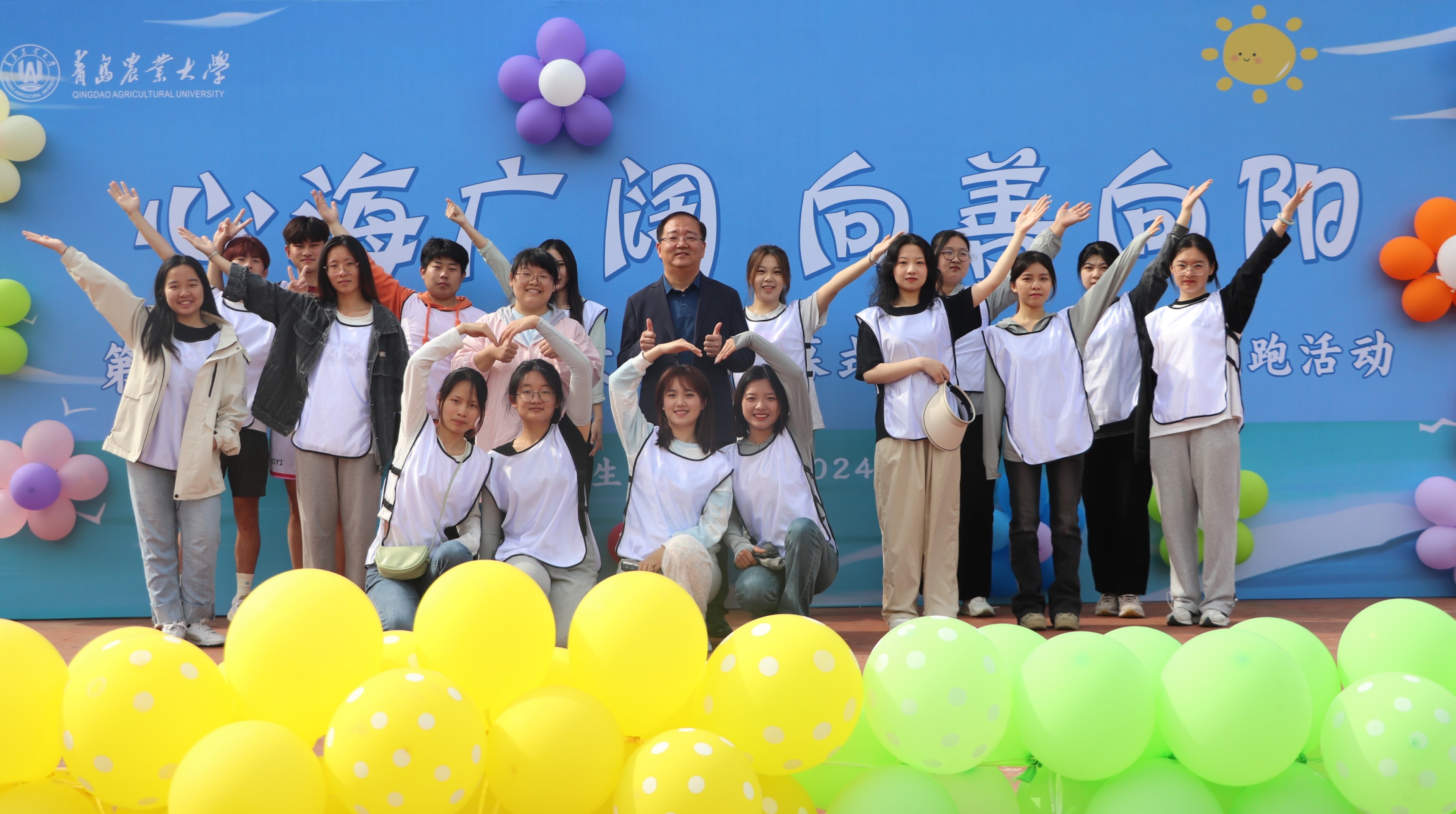 太阳成tyc7111cc第二十届大学生心理文化节开幕式暨阳光心理彩虹跑活动在城阳校区知音广场和平度校区农展馆前广场同步举行。我院承办彩虹跑烦恼“拜拜”关卡,学院四支代表队参加。本次活动丰富了校园生活,促进同学们的身心健康,同时增进了师生之间的互动,活动践行体育与心理健康教育的有效融合,增强育心意志。