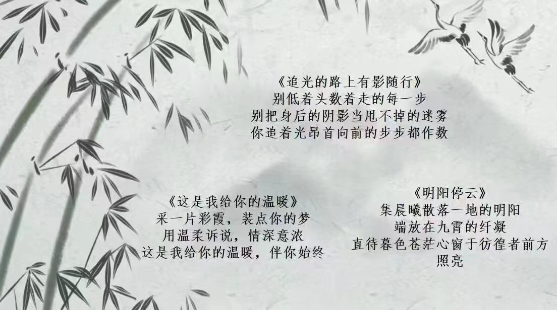 为提高广大学生的科学文化素养,形成正确的世界观、人生观、价值观,学院组织开展了“‘智’愈成长,创心未来”心理科普作品创作大赛、“言表心意,语暖人心”校园心理文化标语征集、“这是我给你的温暖”三行诗征集活动等一系列创作活动,通过活动,同学们的压力进一步得到释放,内心在创作中得到进一步的升华。