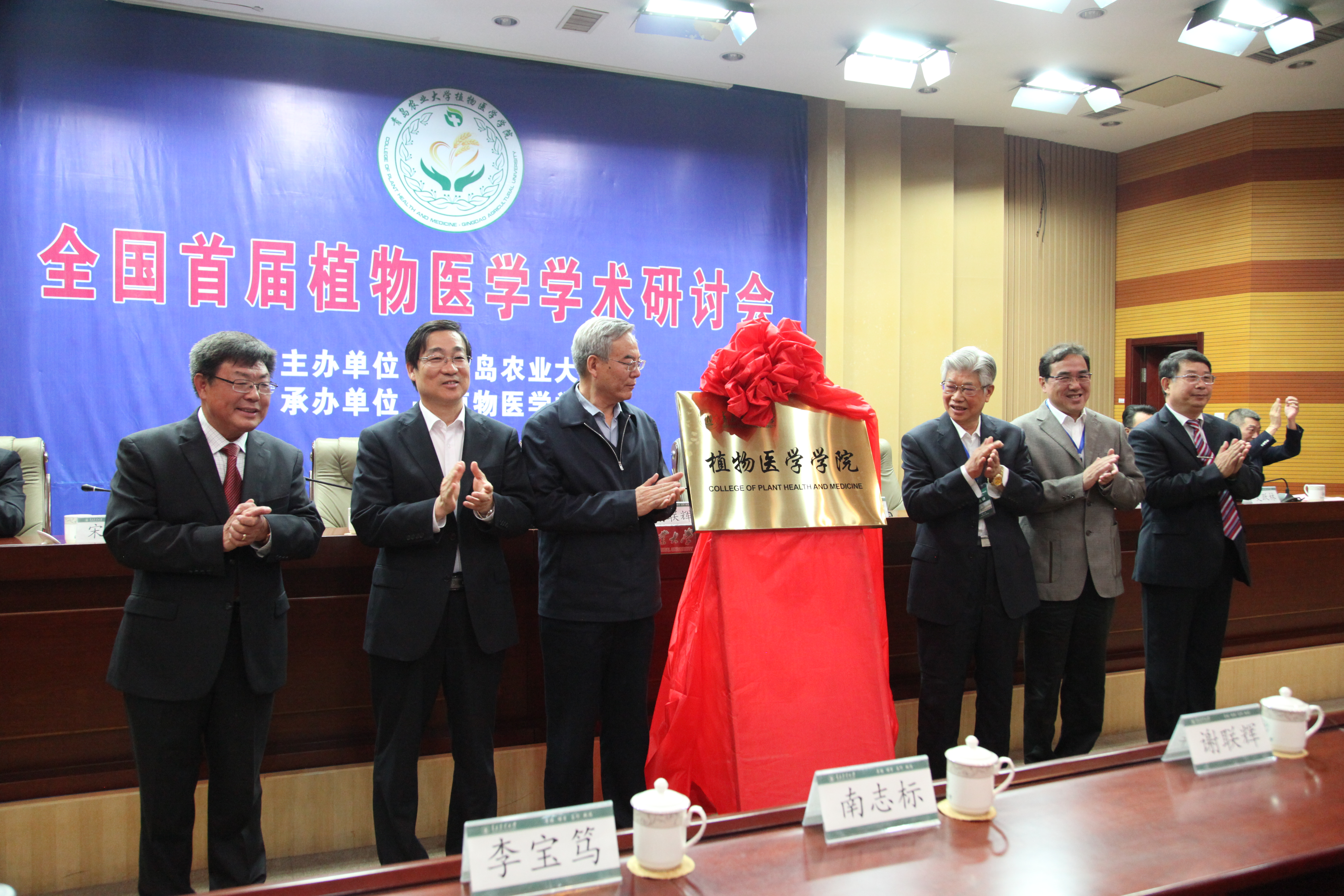 在举行的tyc7111cc太阳成集团揭牌仪式上,谢联辉院士、南志标院士、陈剑平院士、张跃进研究员、李宝笃书记、宋希云校长、tyc7111cc太阳成集团院长刘同先教授共同为tyc7111cc太阳成集团揭牌。