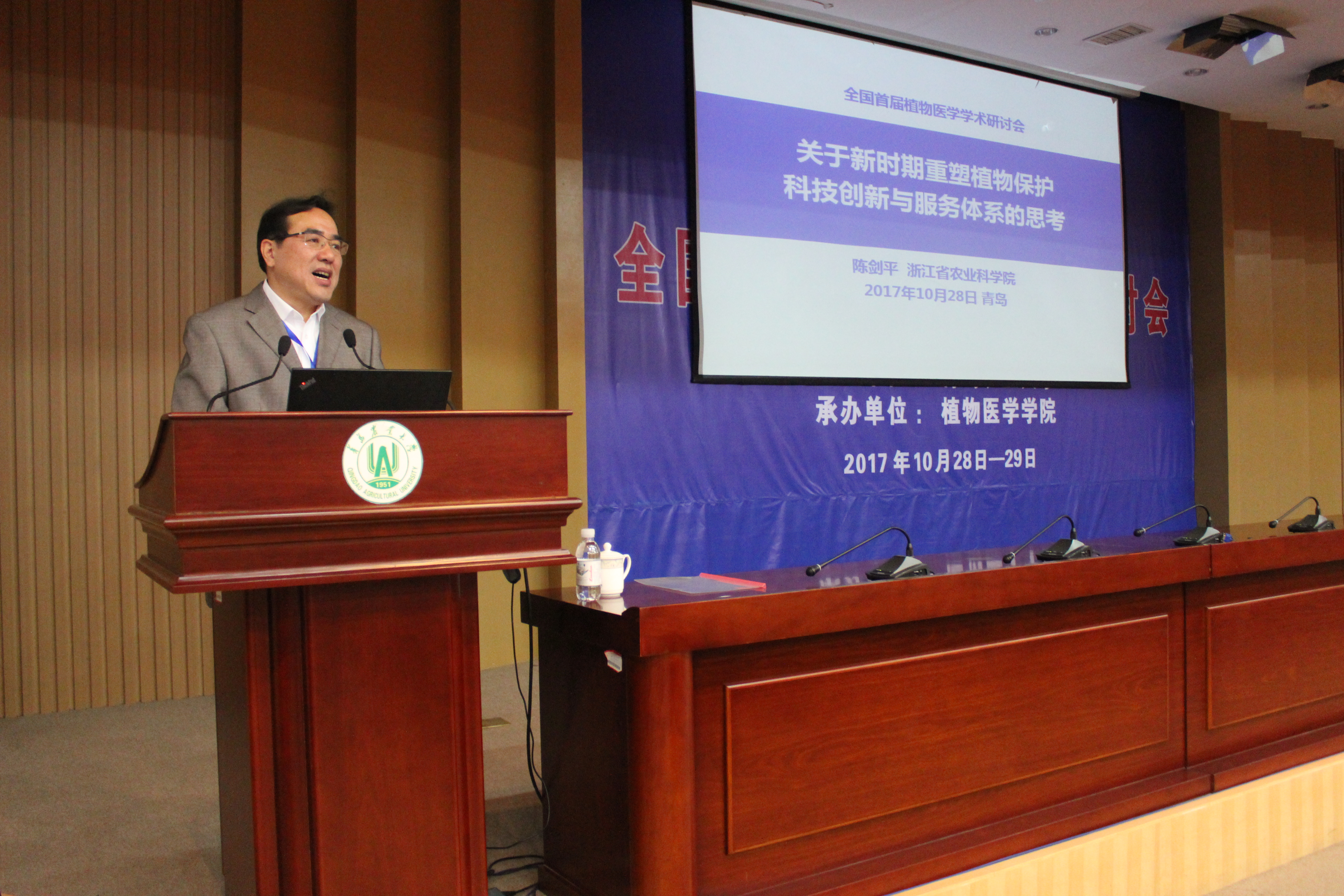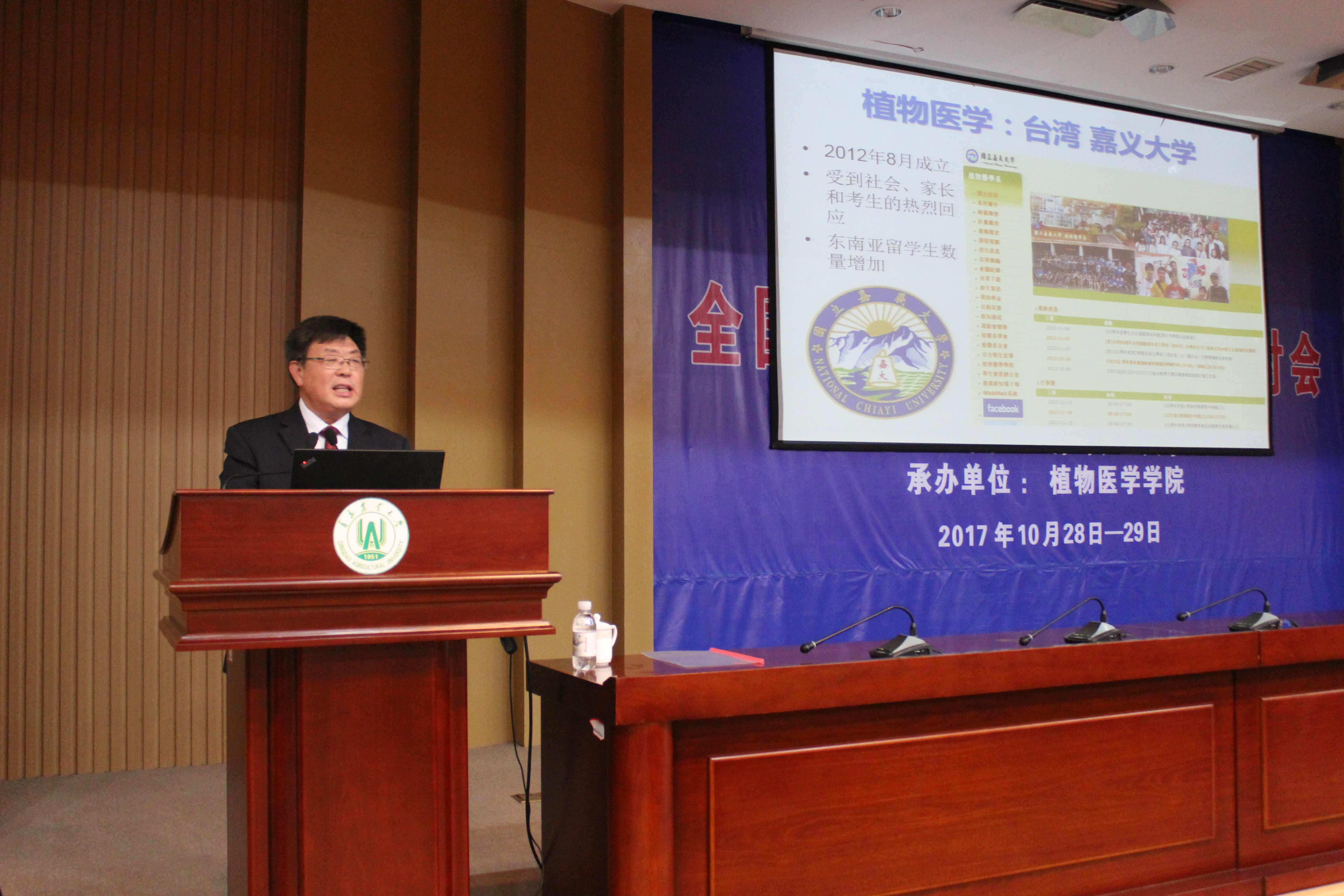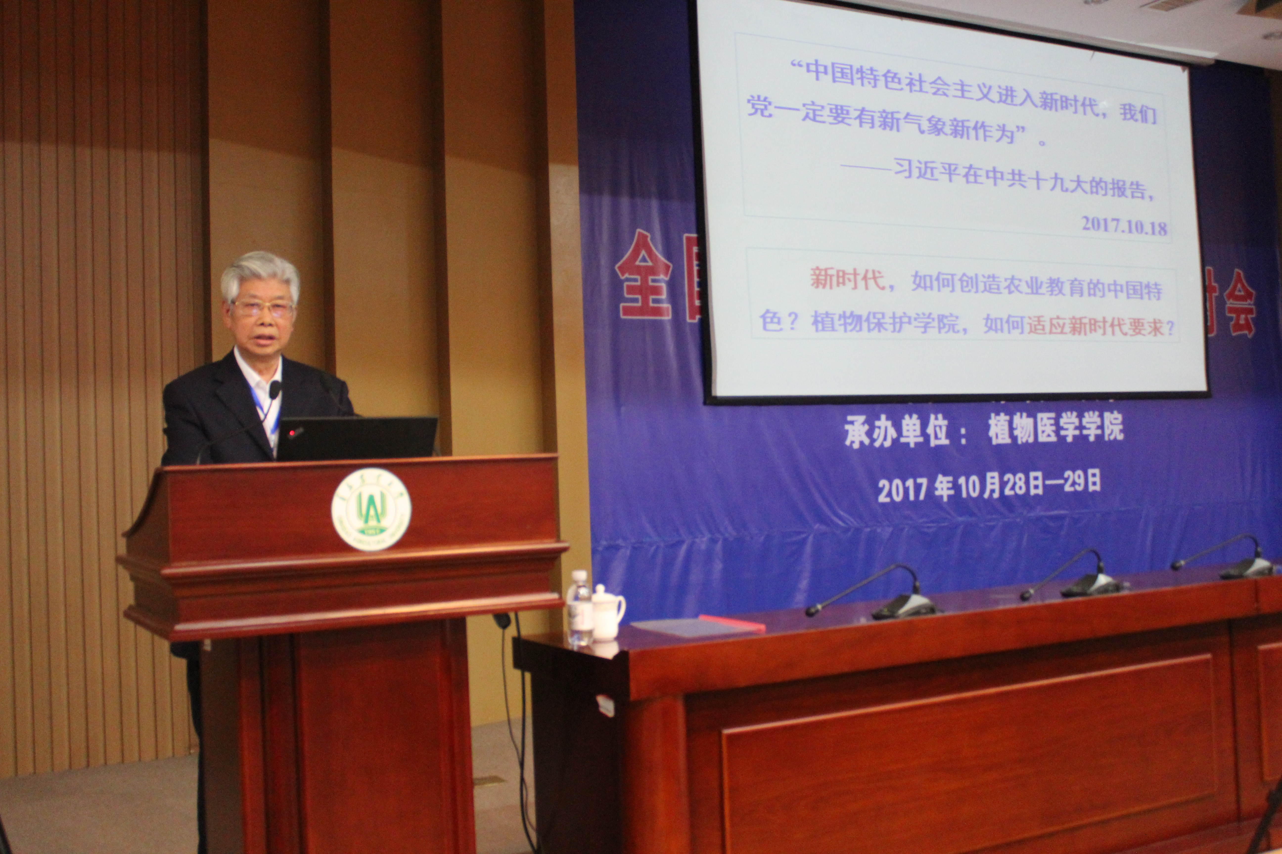 10月28日上午,中国科学院院士谢联辉教授、中国工程院院士南志标教授、中国工程院院士陈剑平研究员、农业部全国农业技术推广服务中心首席植保专家张跃进研究员等来自全国50余高校和科研院所的知名专家学者齐聚我校,共同参加由我校举办的全国首届植物医学学术研讨会和我校tyc7111cc太阳成集团揭牌仪式,共商植物医学人才培养大计,共谋贯彻落实十九大精神,推进生态文明建设和建设美丽中国新思路、新路径、新举措。