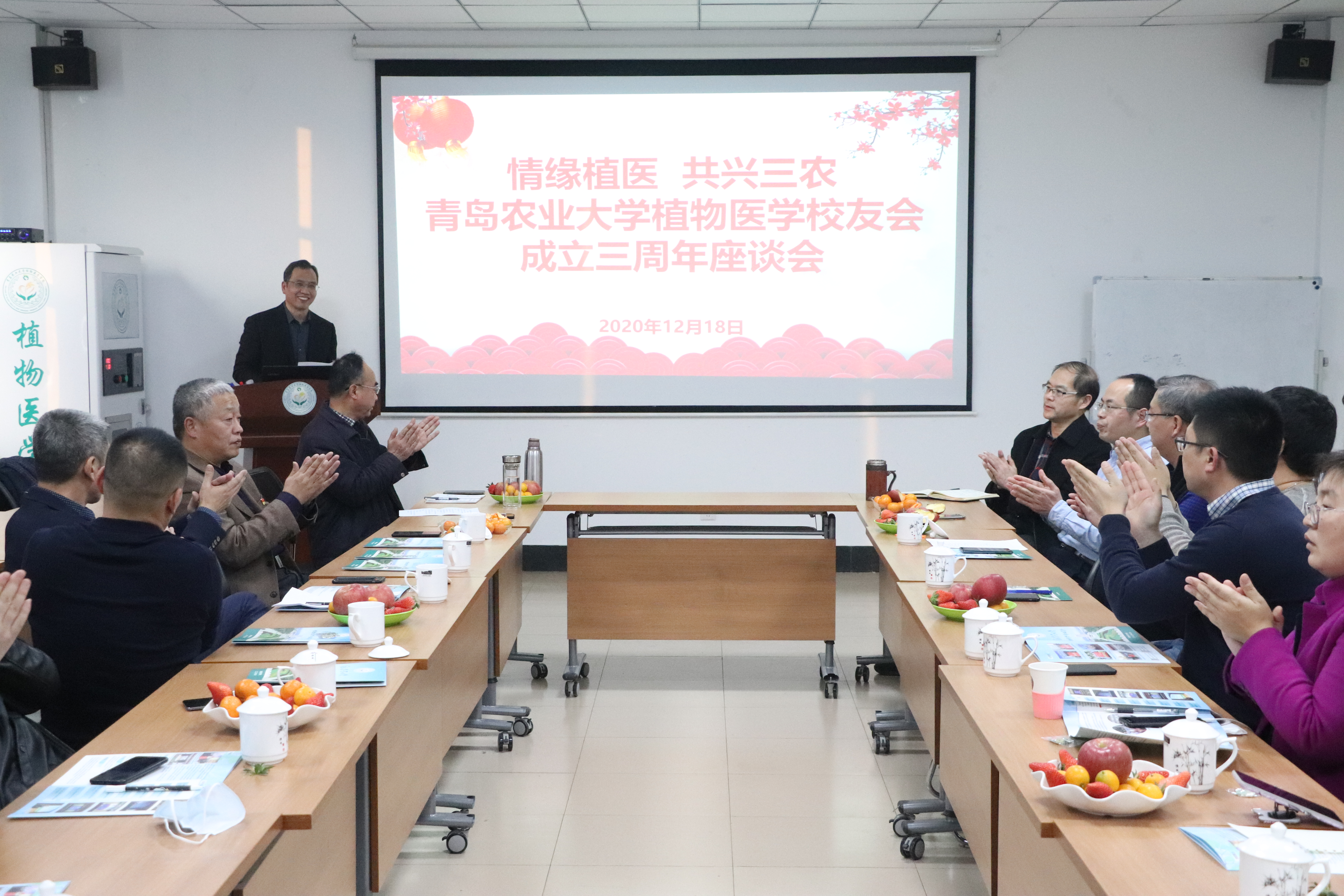 12月18日,tyc7111cc太阳成集团举行“情缘植医,共兴三农”植物医学校友会成立三周年座谈会,学院党总支书记韩强,副书记、副院长李军,副院长赵洪海、梁文星、黄金光,各系主任,94级校友、青岛苏贝尔作物营养有限公司董事长万太斌,97级校友、山东康乔生物科技有限公司董事长李宁等优秀校友代表20余人参加座谈会。