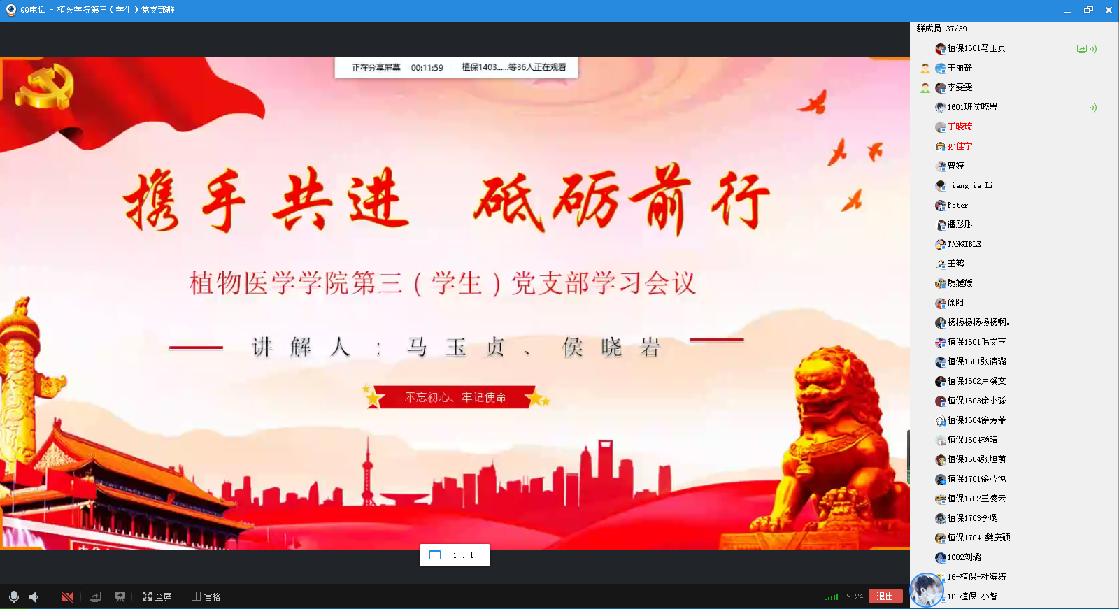 侯晓岩带领大家学习当前党中央对于精准复工复学的有关措施,了解各地各学校不同的复工复学手段。同时对全体党员提出了两点倡议,一是当前稳经济,促发展,复工复产任务严峻,作为学生党员,要具有大局意识,配合社区与家庭工作,主动参与各项重要防疫工作,主动加入党员先锋队、志愿服务队,主动认领党员示范岗、责任区,充分发挥先锋模范作用。二是复学防疫工作严峻,全体学生党员要做好同学们的“定心神针”,配合学院辅导员,积极传播正能量,努力做好表率,多做贡献。