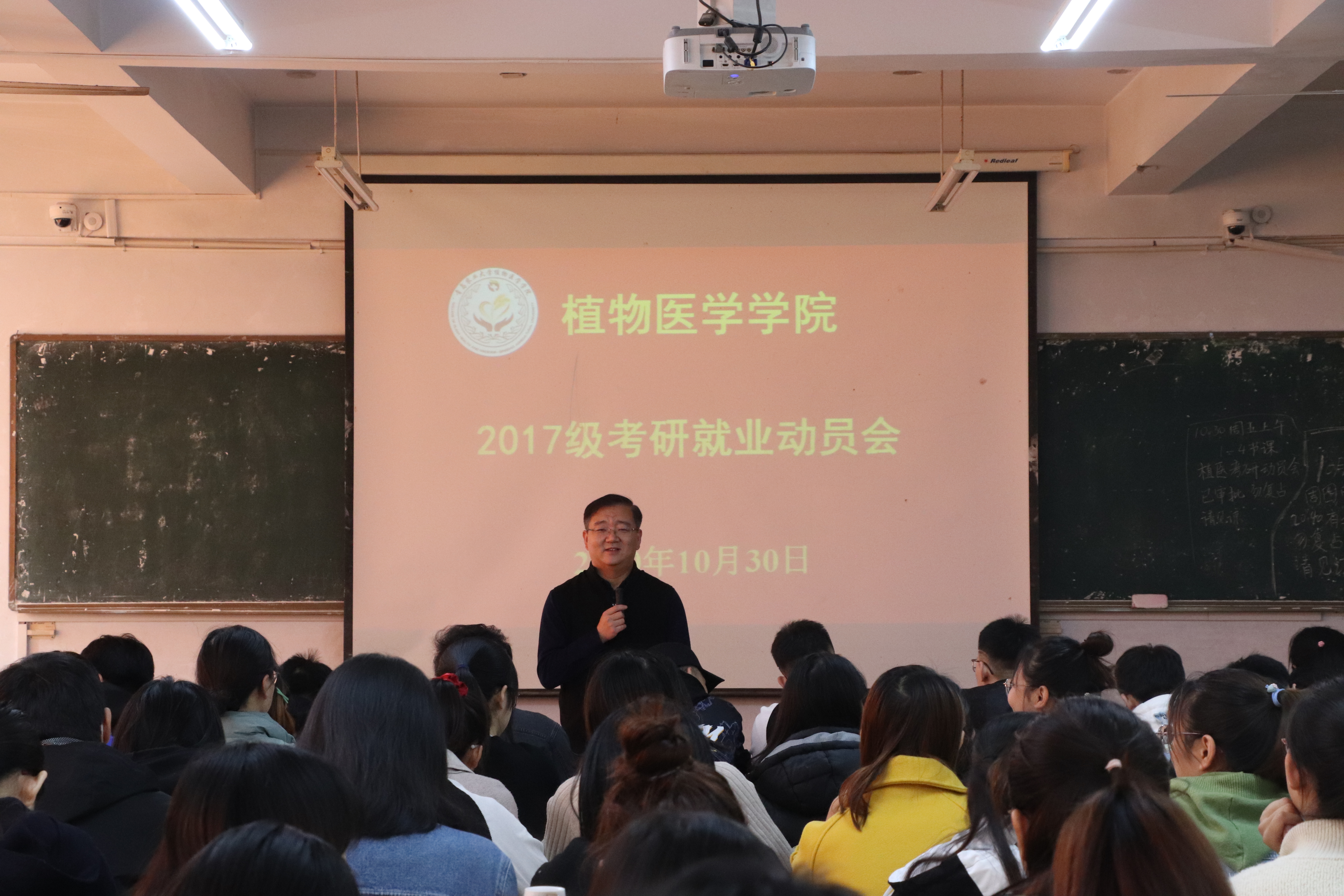 会上,李军为同学们讲解了近几年的考研升学情况,结合前四届考研录取情况的分析指出,高考研率和高报考率充分说明了同学们对考研的积极性和热情,进一步升学深造的愿望强烈,学院优良的教学科研条件和丰富的社会资源也为广大同学考研提供了有力的保障。李军强调,毕业生同学应从事业发展的长远角度选择就业方向,在基层和一线中接受磨砺,在工作中充分发挥专业优势,最终才能厚积薄发,脱颖而出。他希望2017级备考学生在即将到来的考研冲刺中,合理安排生活学习节奏,调整好作息时间,注意劳逸结合,以饱满的精神状态和良好的心态迎接即将到来的挑战,并预祝考研的同学们金榜题名。