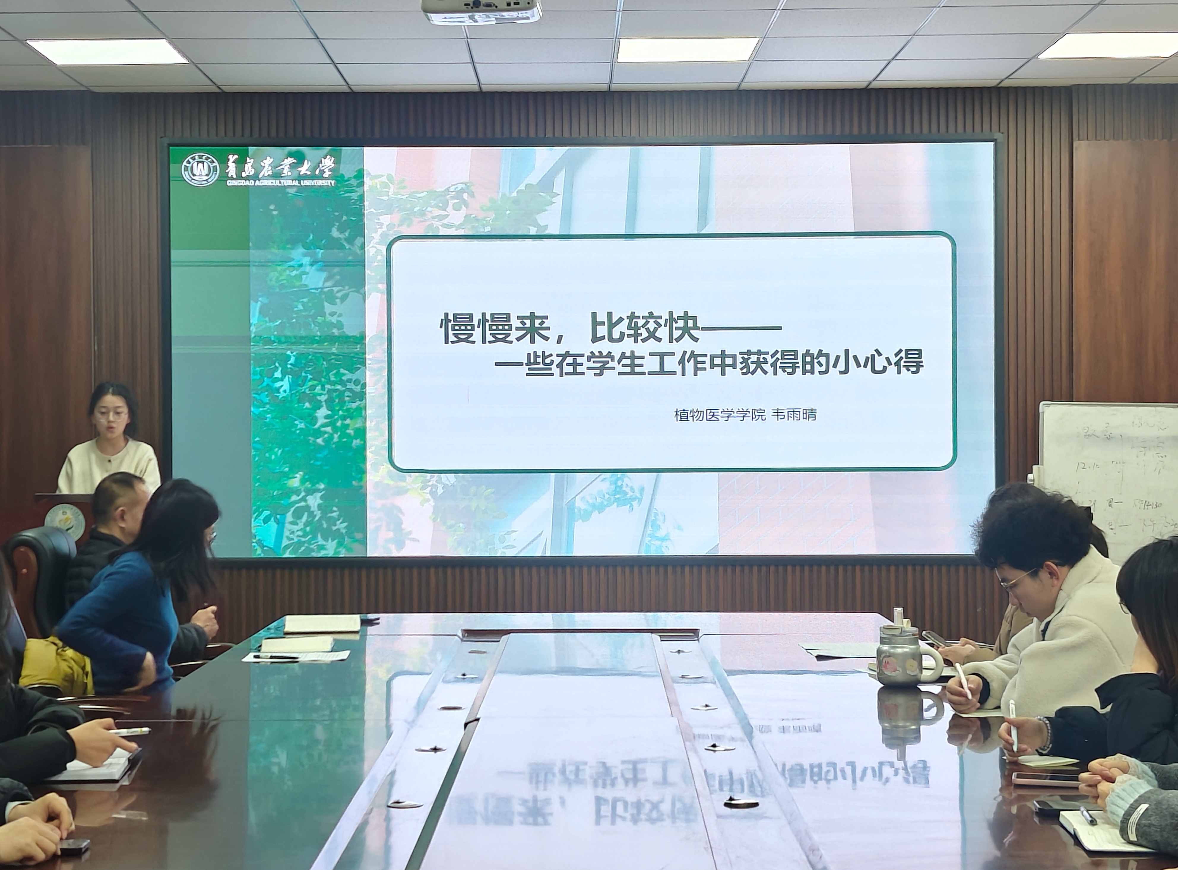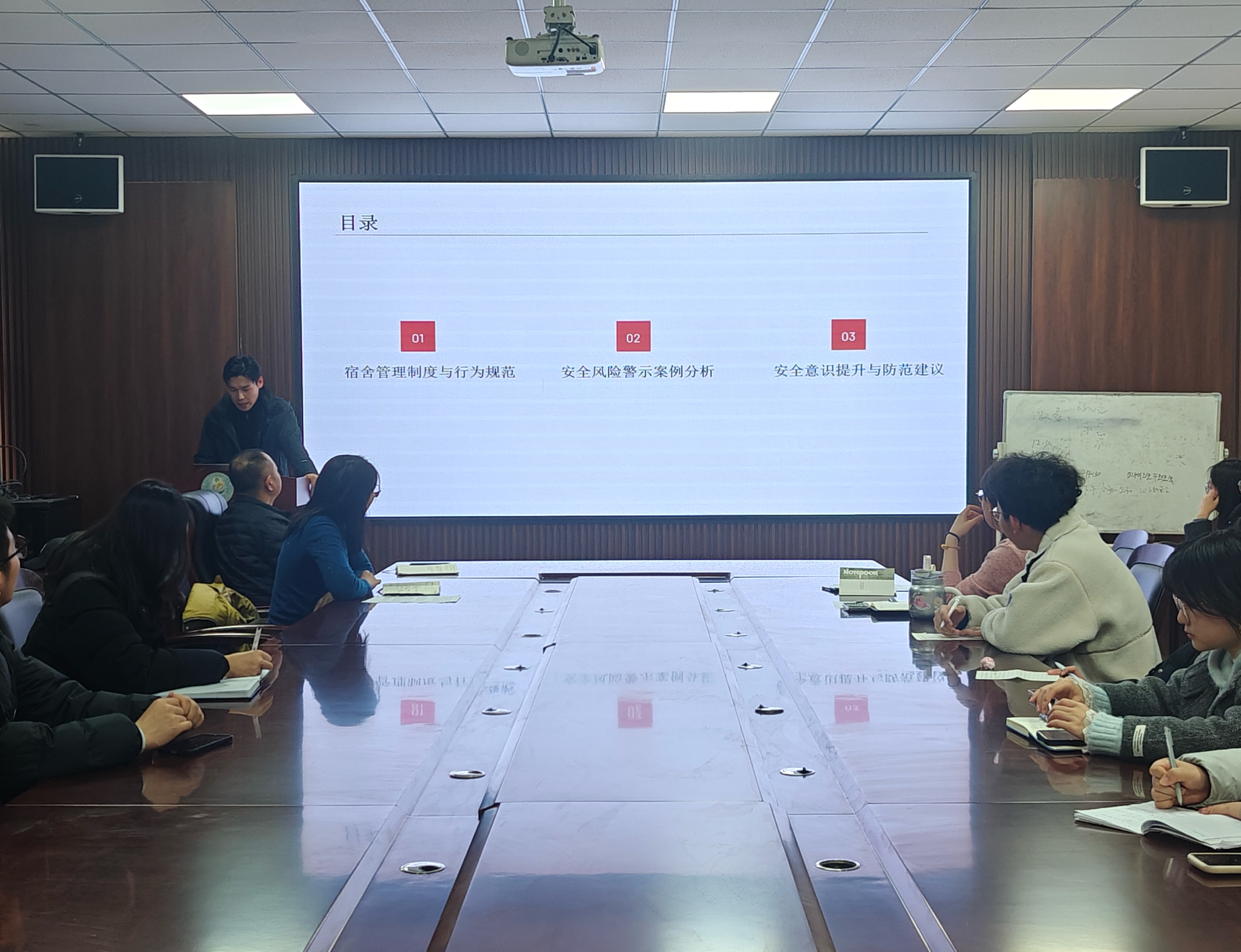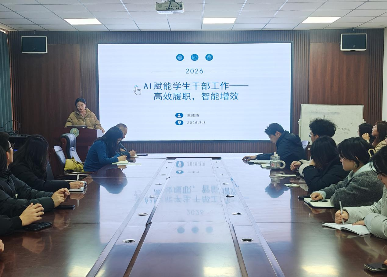 张琳就意识形态相关工作进行安排部署。房明聚焦安全主题,从宿舍安全、电信诈骗防范、外出安全三大维度展开培训。王玮琦围绕“AI赋能学生干部工作——高效履职,智能增效”主题进行讲解。学生代表韦雨晴以“慢慢来,比较快”为主题,分享自己在工作和学习中的心得体会。