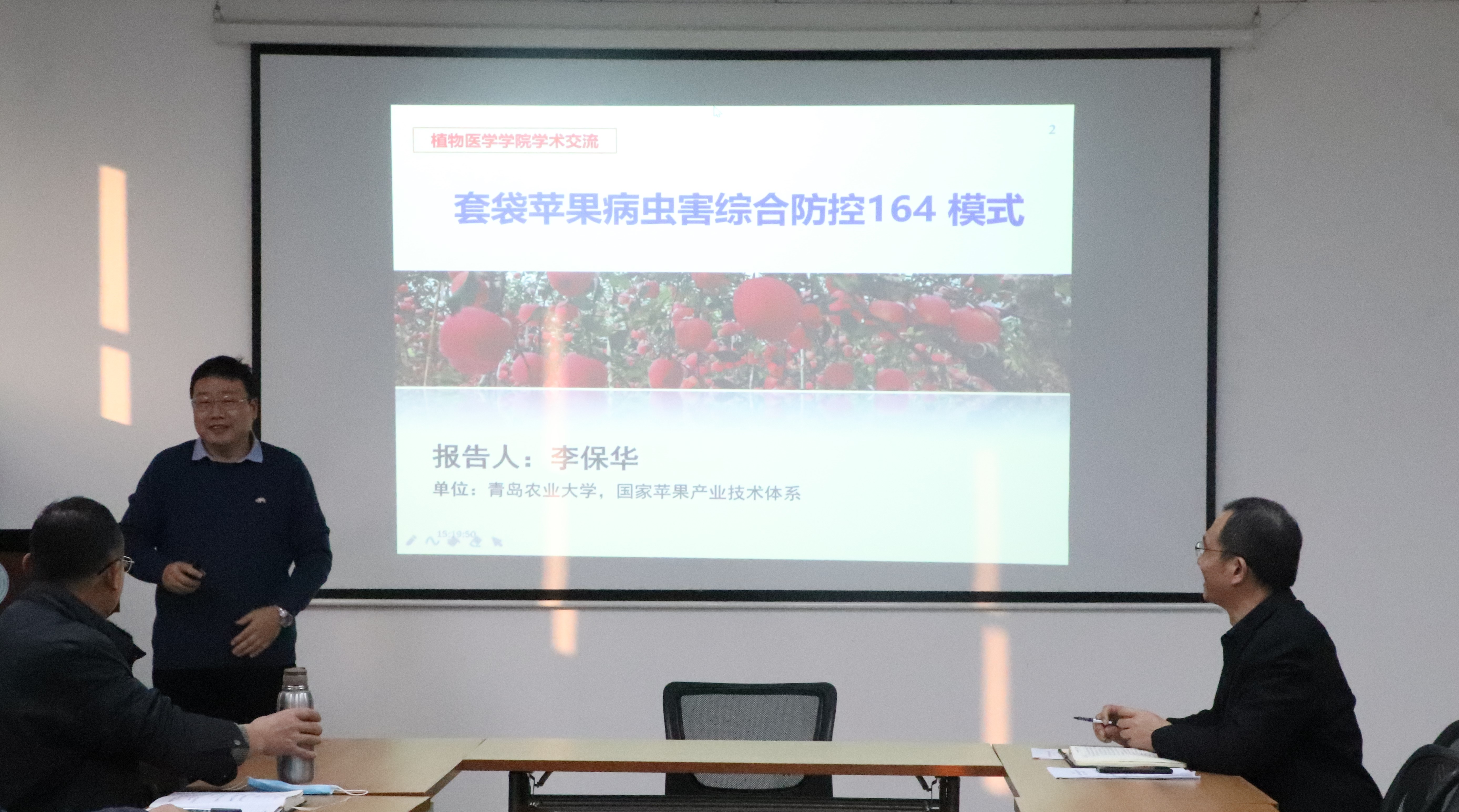 会上,李保华首先通过图片形式列举了烟台苹果产区的病害种类及其对果农造成的惨重经济损失,并以此为引介绍了经多方研究设计出的绿色防控“164”模式这一生态防控措施。他着重指出了可进行病害防控的六个关键时期及相应有效防控措施,并强调了防控对象确定的重要性。李保华说,在确定及向果农宣传防治药剂时,需充分了解果农的用药习惯,并在此基础上加以指导,使果农充分理解,使方法易于操作。之后介绍了果树生长期中的四个重点防治期及对应的监控对象,并对用药防治措施进行深入分析。最后,他展示了以果园为试验田的示范试验,在生态防控措施的实施下,病害防治取得了显著效果。最后,各位老师就本次论坛内容积极地提出问题,共同交流探讨。