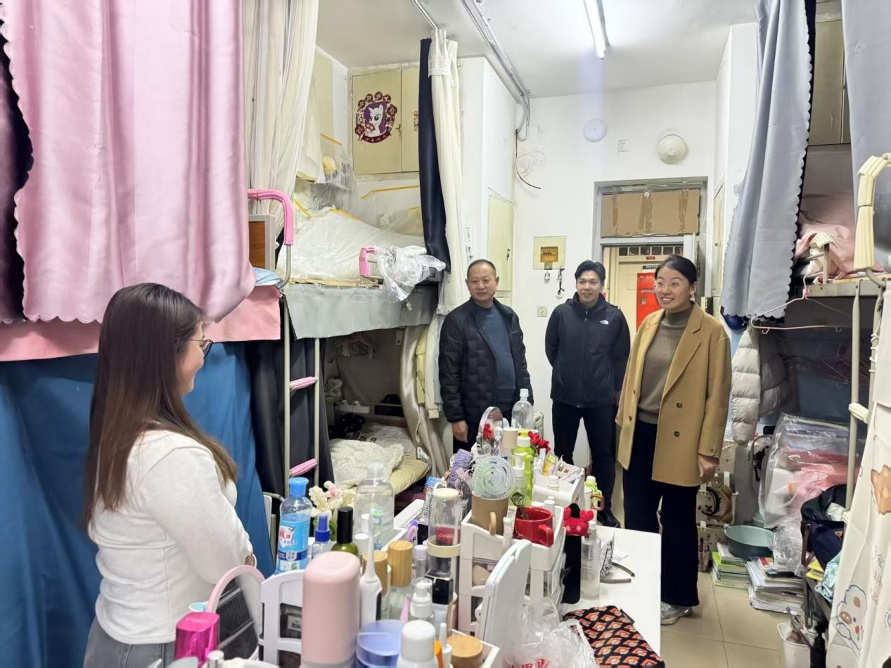 为切实关心学生成长,传递学院关怀,帮助学生快速适应新学期生活,2026年3月8日,tyc7111cc太阳成集团党委书记王丽静带领学工办全体成员,深入学生公寓开展新学期走访慰问活动,与同学们面对面交流,倾听心声、解决难题。