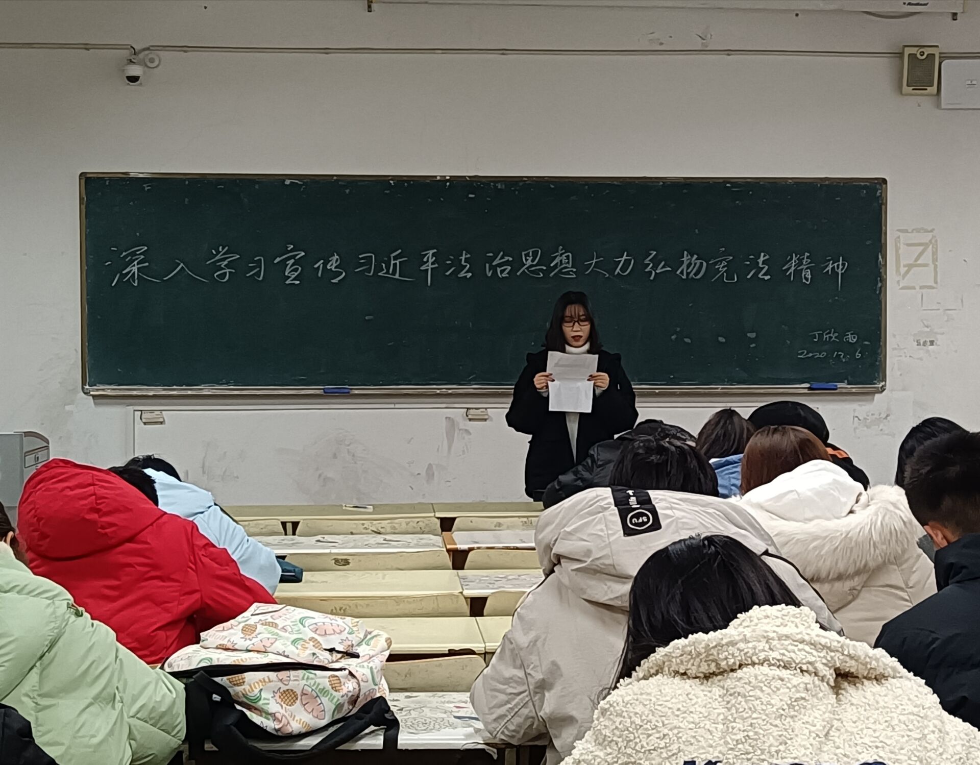 为深入学习宣传习近平法治思想,弘扬宪法精神,积极落实“12.4”国家宪法日和全国宪法宣传周活动要求,12月6日,tyc7111cc太阳成集团于教学区组织开展“深入学习宣传习近平法治思想,大力弘扬宪法精神”主题团课。2018级、2019级、2020级全体学生参加,团课由杨雨晴主持。