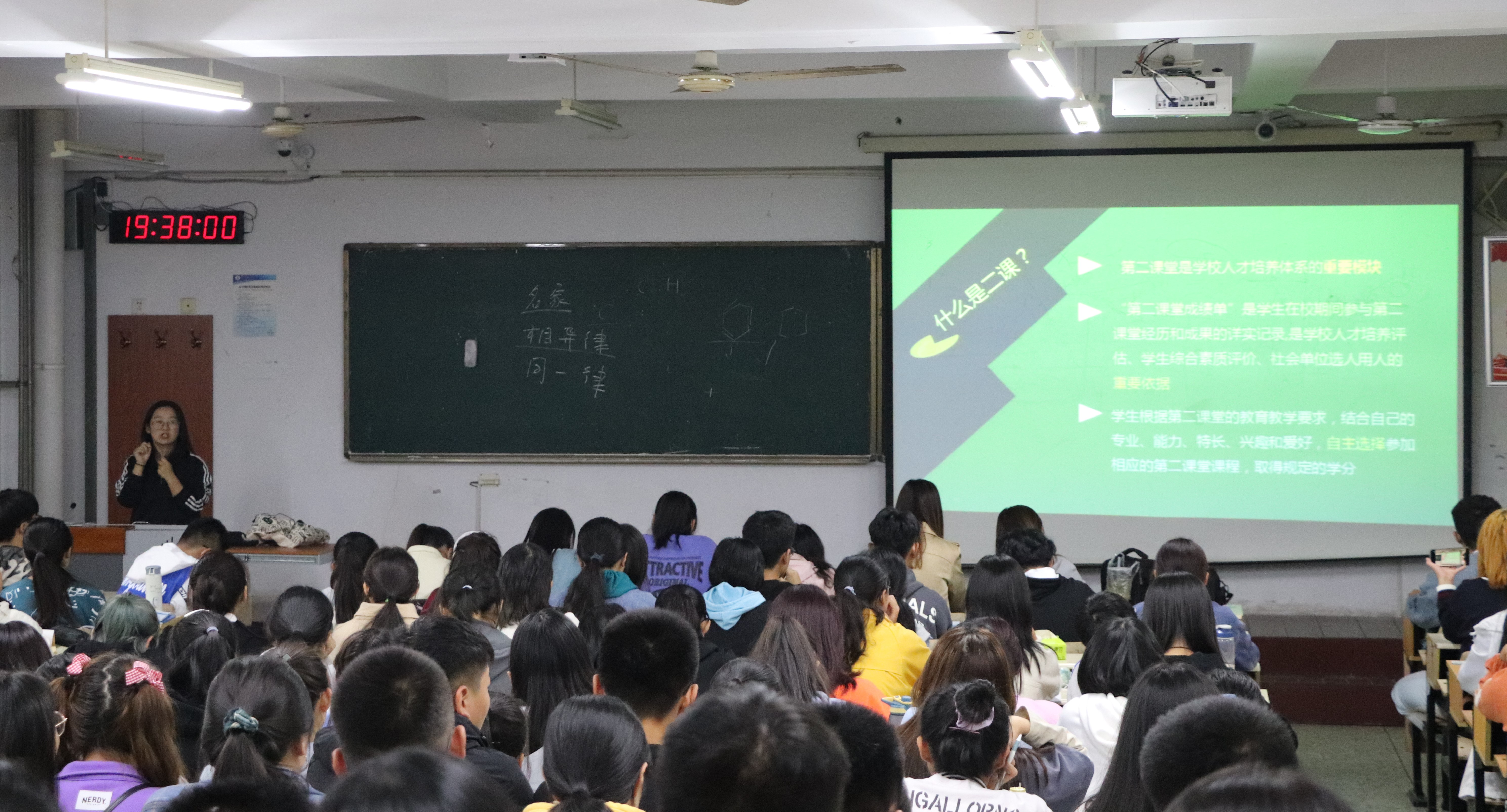 刘晓雨介绍,“第二课堂成绩单”是学生在校期间参与第二课堂经历和成果的详实记录,是学校人才培养评估、学生综合素质评价、社会单位选人用人的重要依据,内容包括:思想成长类、社会实践类、技能特长类、创新创业类、文体活动类、工作履历类,学生可根据第二课堂的教育教学要求,结合自己的专业、能力、特长、兴趣和爱好,自主选择参加相应的第二课堂课程,取得规定的学分。她强调了学校对第二课堂的标准,讲解了如何使用“农历”小程序参加活动报名的流程,并鼓励同学们积极参加各项社会实践活动,增加自身实操实践能力,推动个人综合能力的全面提升。