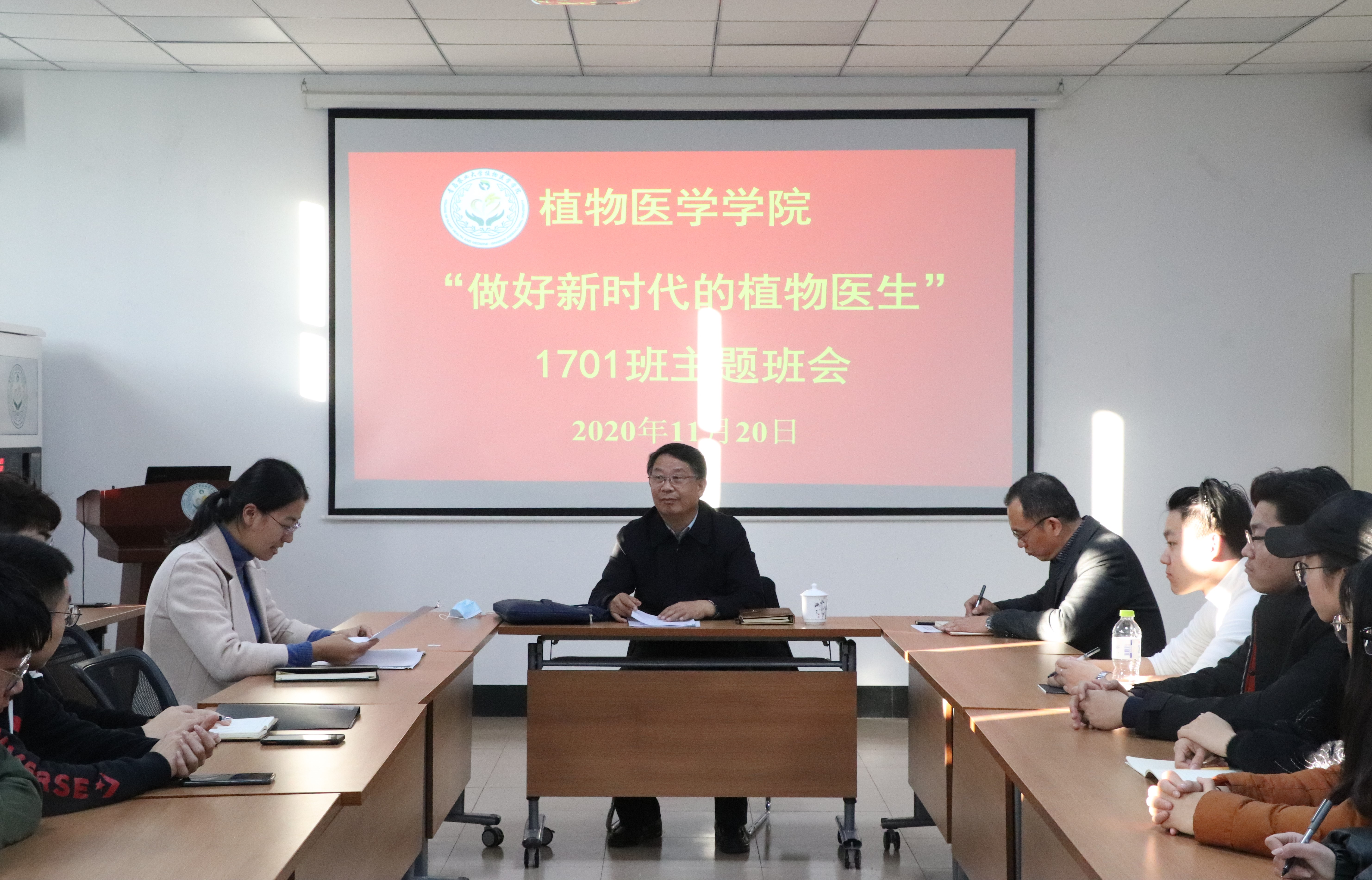 11月20日,太阳成tyc7111cc党委书记李宝笃来到tyc7111cc太阳成集团,深入联系班级,参加植保1701班“做好新时代的植物医生”主题班会,学院党总支书记韩强出席,1701班全体同学参加。主题班会由植保1701班班主任、学院团委书记王丽静主持。