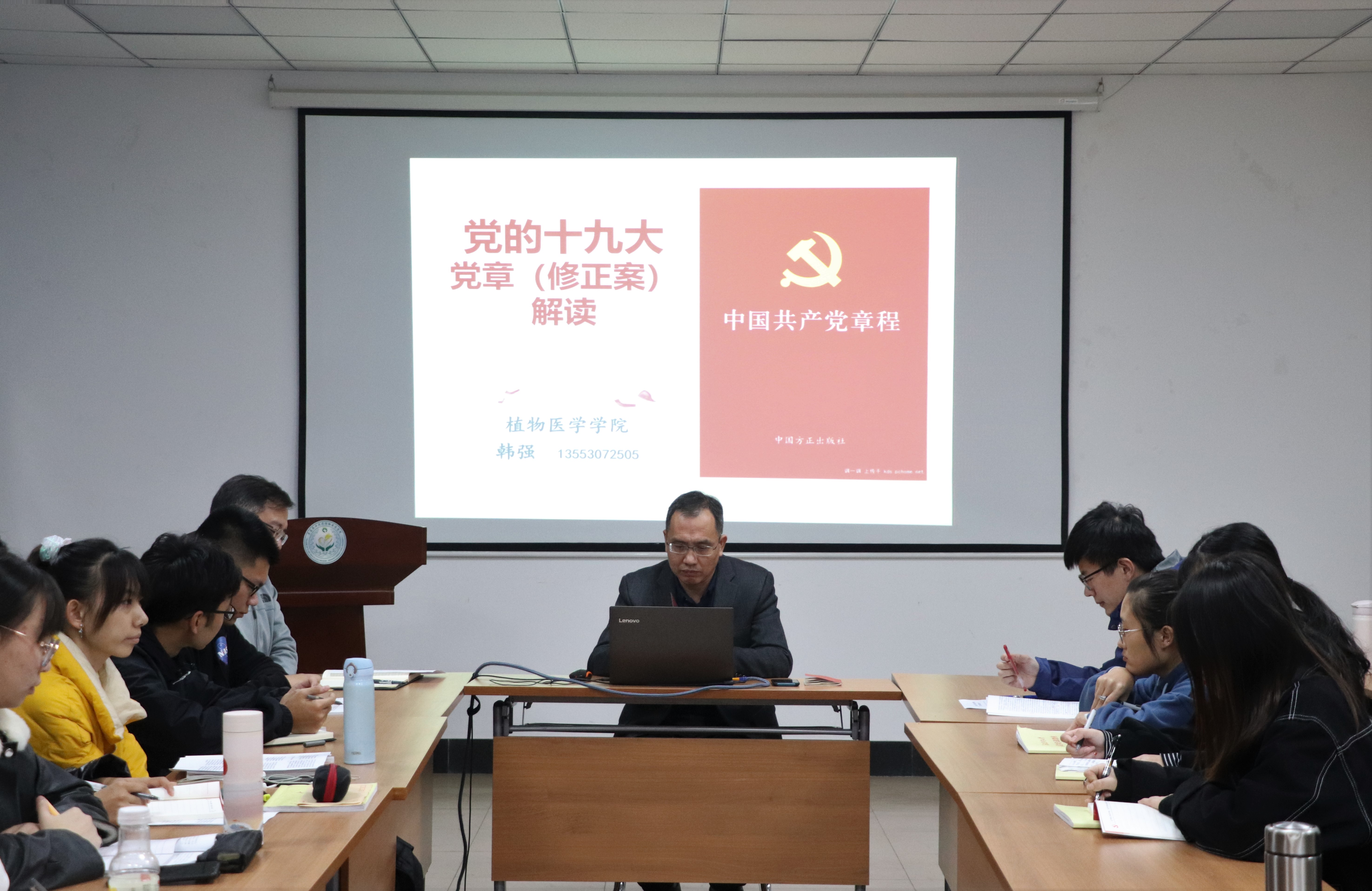 韩强从党的十九大修改党章的法理依据、历史依据与现实依据出发,对党的十九大通过的《中国共产党章程(修正案)》的框架结构、主要内容和主要特点进行了详细解读,党课旁征博引、深入浅出,使同学们进一步了解了十九大党章的基本内容、主要特点,进一步加深了对十九大党章地位和作用的政治认识,进一步明确了学习贯彻十九大党章的基本要求和任务。韩强强调,学习十九大党章首先要准确理解十九大党章的主要内容,从总体上把握十九大党章的框架结构、主要特点,做到前后贯通,掌握其核心要义;其次要深刻领会十九大党章背后所体现的政治要求、价值取向和精神追求,增强践行党章的组织性、纪律性,始终坚持全心全意为人民服务的宗旨,在实践中努力把党章的各项要求真正落到实处。