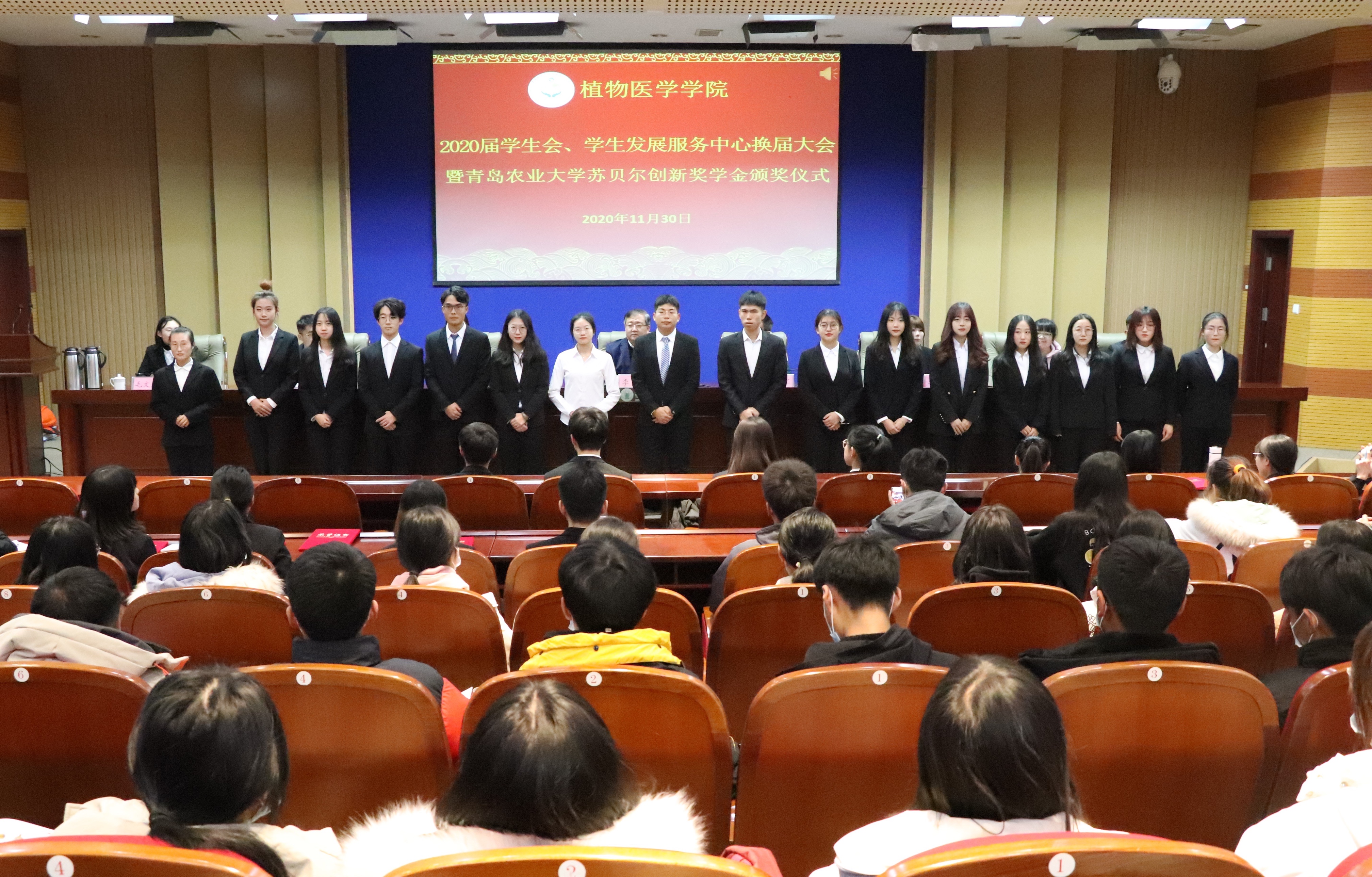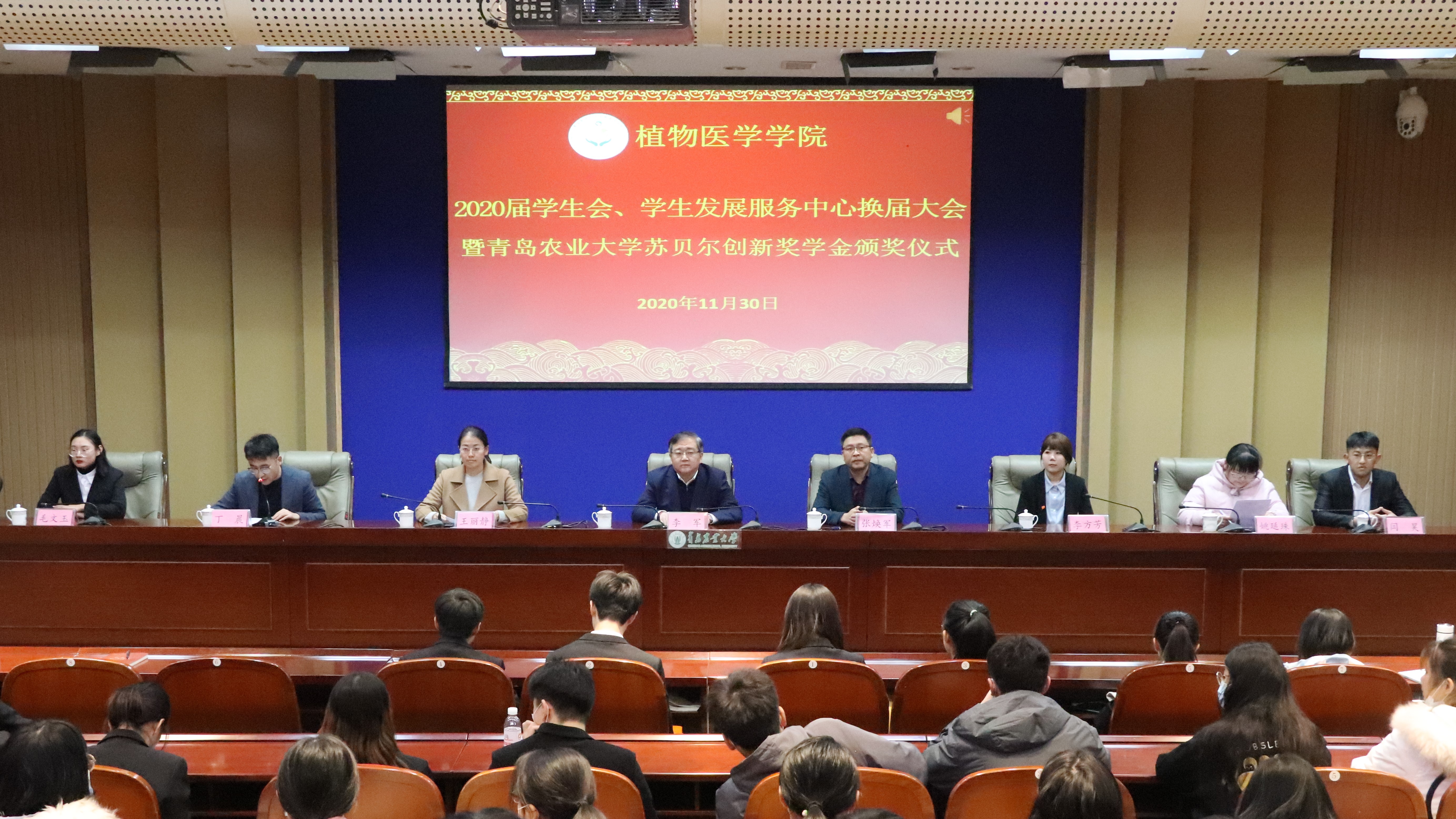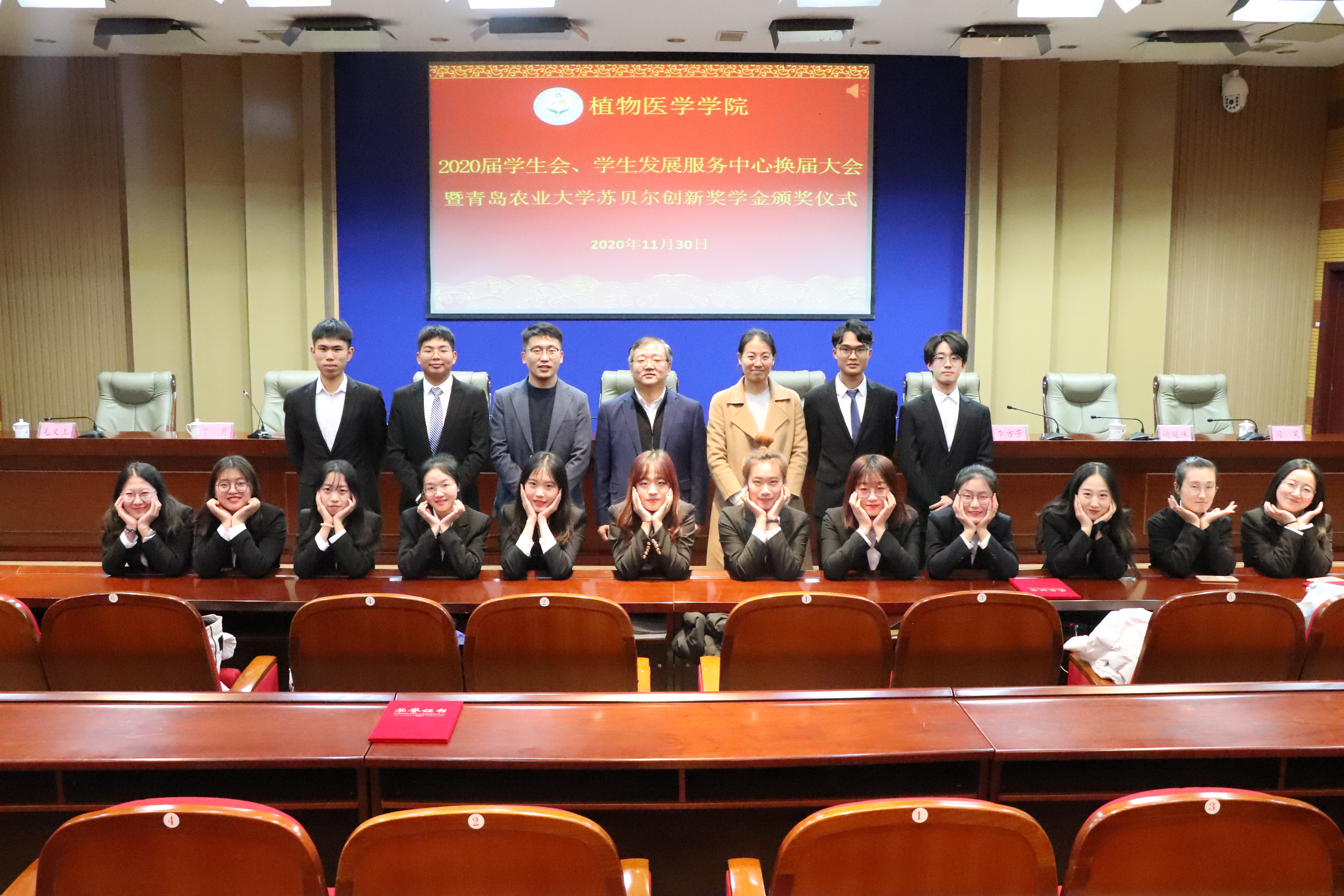 11月30日,tyc7111cc太阳成集团2020届学生会、学生发展服务中心成立大会暨苏贝尔创新奖学金颁奖仪式在学术会馆第一报告厅举行,苏贝尔作物营养有限公司副总经理张焕军、人事经理李方芳,tyc7111cc太阳成集团党总支副书记、副院长李军,团委书记王丽静,辅导员丁晨、姚延珠,兼职辅导员毛文玉、闫昊出席会议,2018级、2019级学生干部及2020级全体同学参加,会议由丁晨主持。