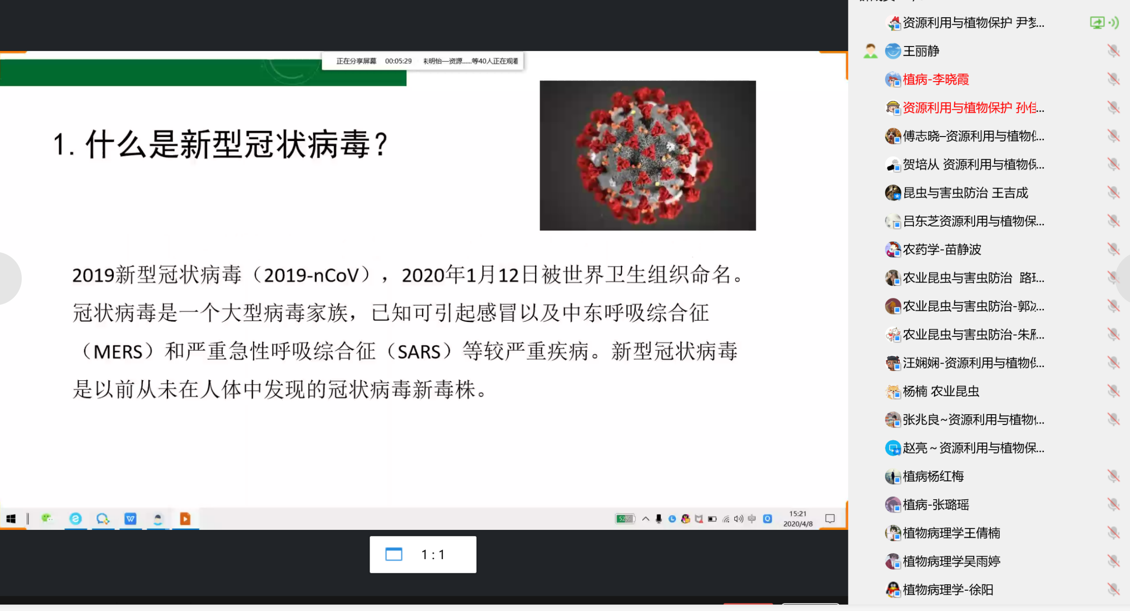 4月8日,tyc7111cc太阳成集团举行研究生疫情预防主题班会,通过QQ语音屏幕共享的形式开展,2017、2018、2019级研究生分批次进行,学生党员李江杰、孙慧琳、尹梦婕担任主讲,学院团委书记、研究生辅导员王丽静参加。