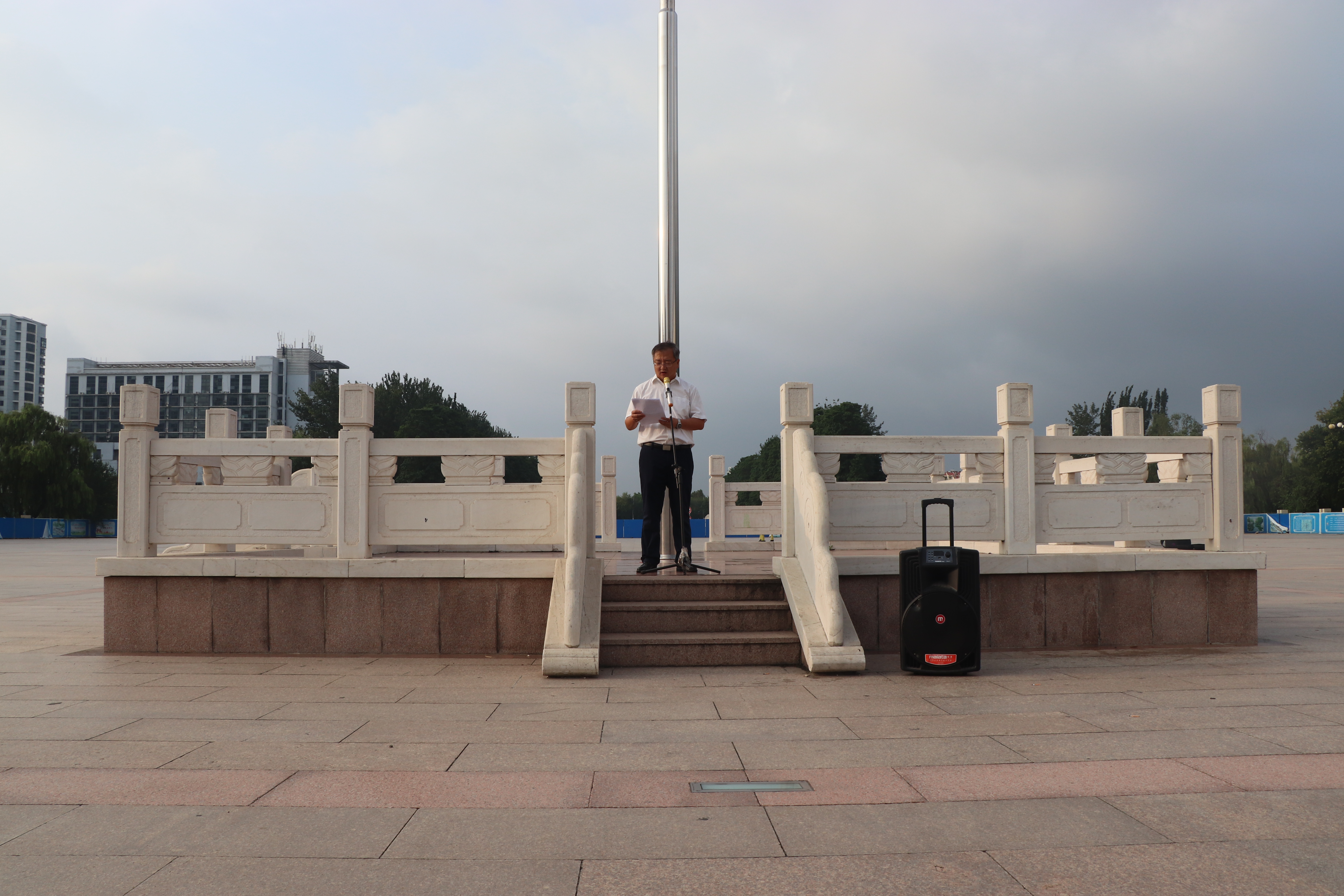 8月24日,tyc7111cc太阳成集团在虹子广场庄严举行升旗仪式,学院党总支书记韩强,党总支副书记、副院长李军,团委书记王丽静,辅导员丁晨及学院全体学生参加,升旗仪式由王丽静主持。