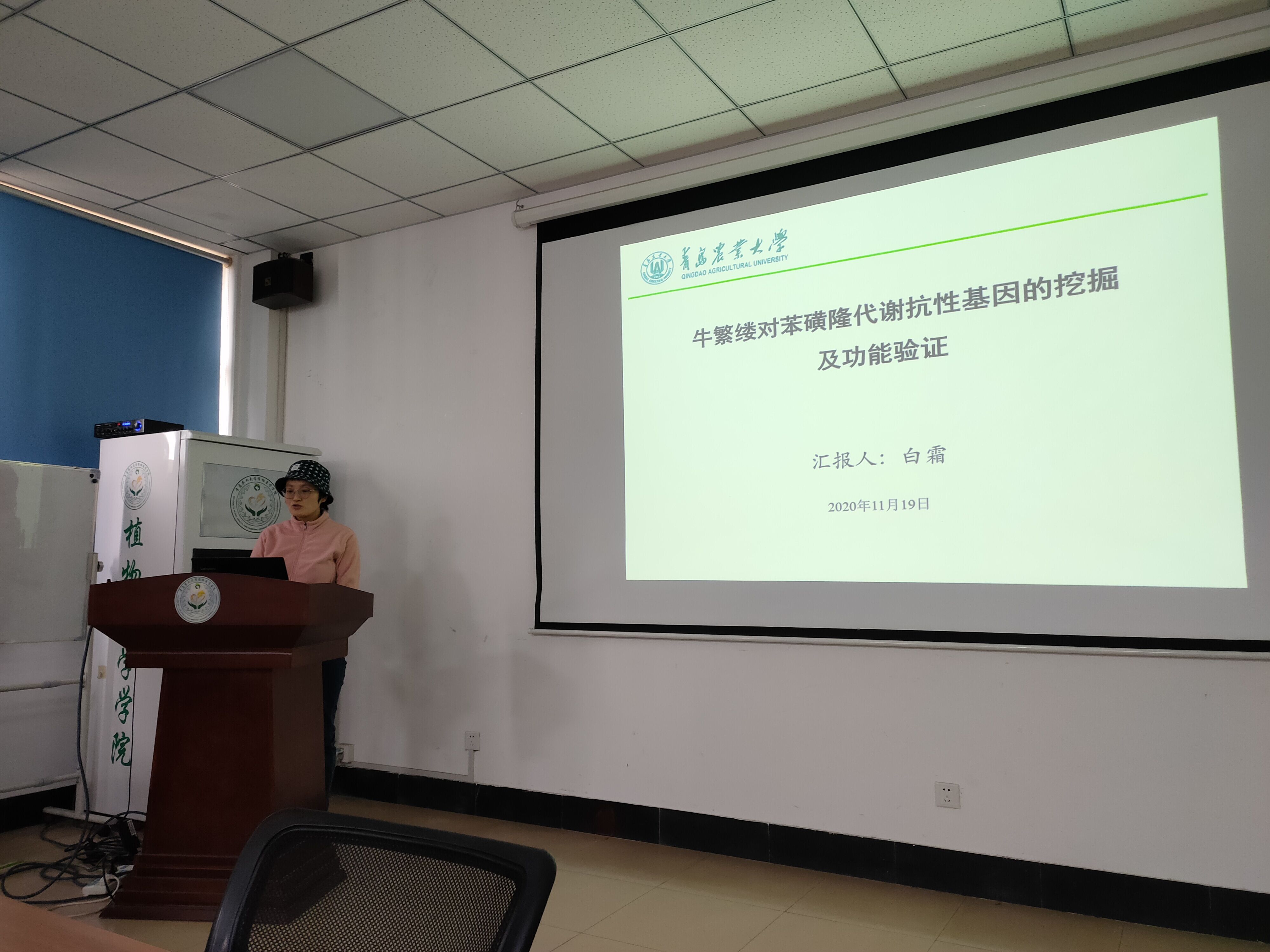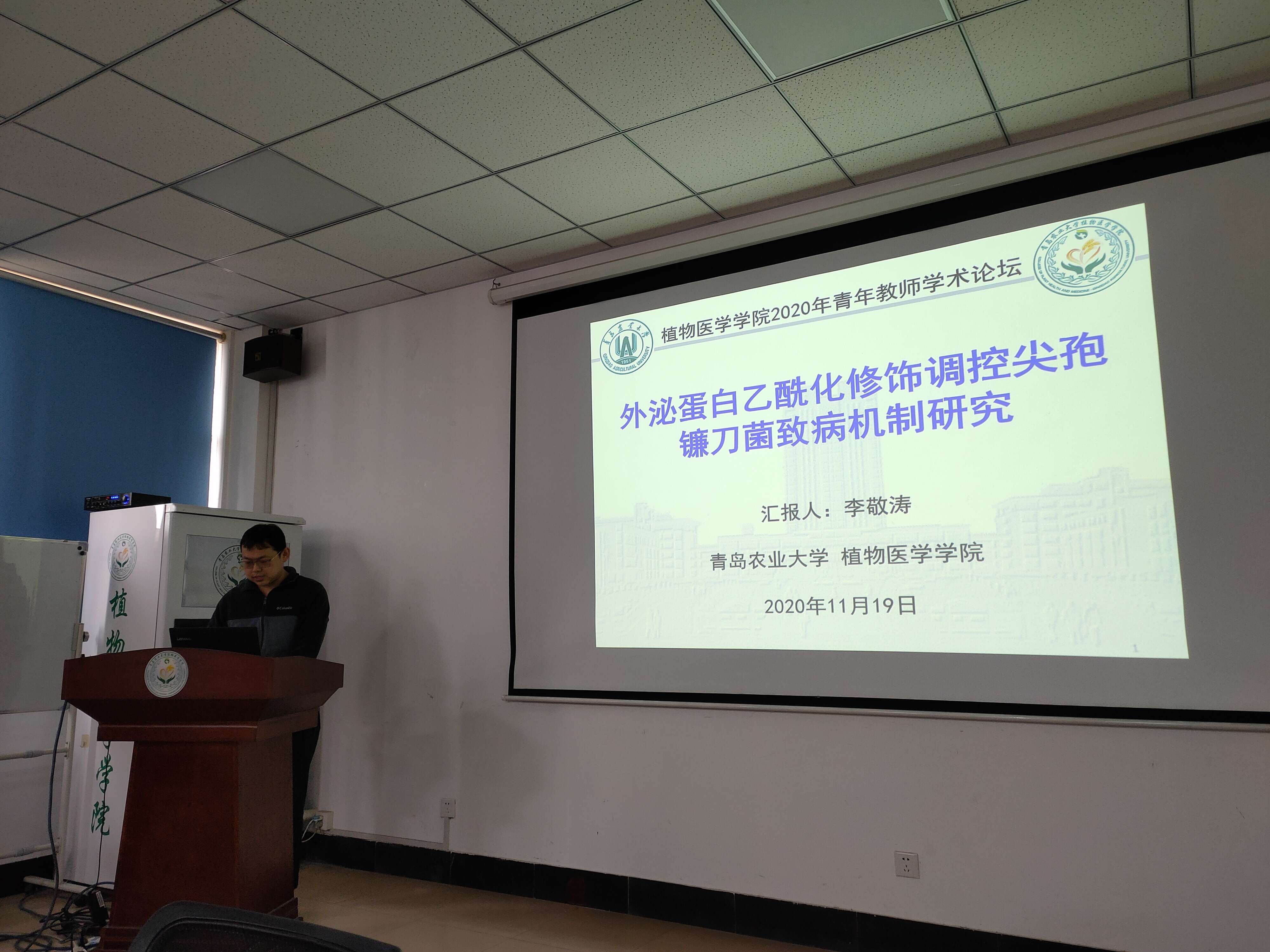 会上,李敬涛做了“尖孢镰刀菌分泌蛋白及乙酰化修饰初探”的报告,详细地介绍了团队在研究中的进行的各种尝试以及多方面的探索工作,并且提出尖孢镰刀菌分泌蛋白及乙酰化的修饰模型,总结了团队收获,分享了研究成果;白霜做了“牛繁缕对苯磺隆代谢抗性基因的挖掘及功能验证”的报告,从研究背景和主要研究成果两个方面作了详细的介绍,最后针对牛繁缕对苯磺隆代谢抗性基因的研究成果提出了结论。两位老师的报告赢得了在座老师的热烈掌声。