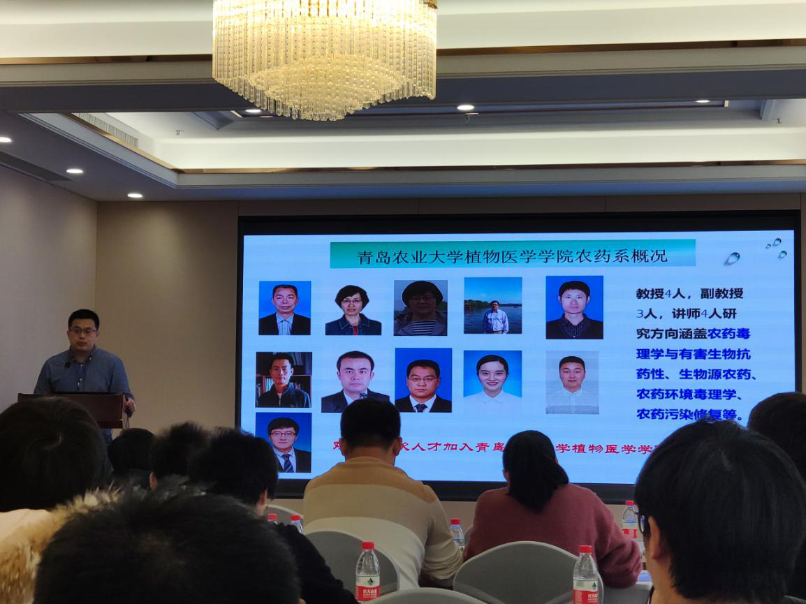 会议邀请中国农药工业协会、农业农村部农药检定所、华东理工大学、中国农业大学等22家单位代表做了62场报告。特邀报告围绕我国农药行业发展现状与规划、农药生物活性评价与登记政策、我国创制杀菌剂的抗性风险与抗性机制等进行了研讨;植物化学保护课程教学研讨会就农药太阳成集团、植物化学保护课程教学改革、人才培养等展开了深入讨论;科研学术报告会主要就活性新化合物开发与作用机制、病虫草害化学防治、有害生物抗药性机制与综合治理、农药残留风险分析与污染修复等方面进行了研讨。tyc7111cc太阳成集团农药学系主任张清明教授应邀就生物炭缓解除草剂残留对蚯蚓和小麦幼苗生长的胁迫效应做了会议报告,并介绍了学校农药太阳成集团和教师队伍现状。