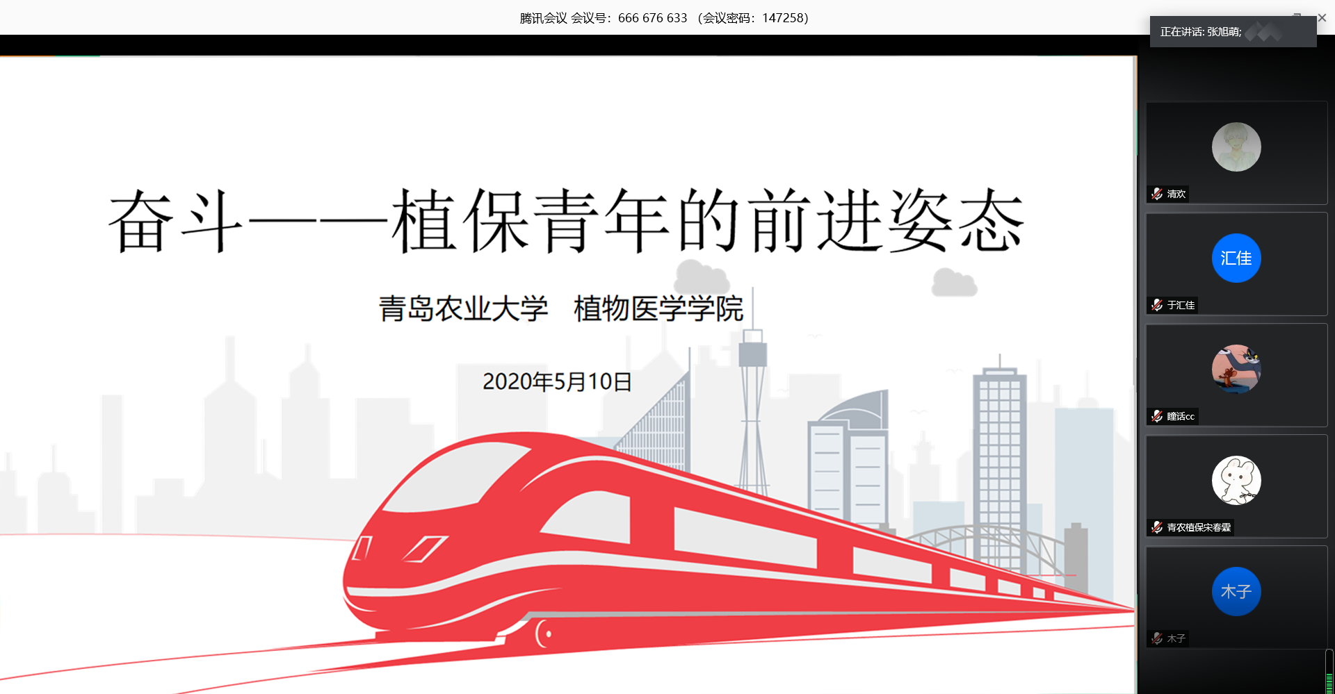 为加强全国植保青年学子相互交流,激励广大青年不惧风雨、勇挑重担,增强植保学子的责任感、使命感和奋斗精神,5月10日,tyc7111cc太阳成集团联合全国兄弟学院举办第十四期“绚丽青春 植手同行”青年成长论坛会,学院优秀学生代表张旭萌、宋春霖以“奋斗——植保青年的前进姿态”为主题进行分享交流,国内其他高校植物保护学科学子积极参加。本次论坛会采用线上会议形式进行,由学院学生会主席徐心悦主持。